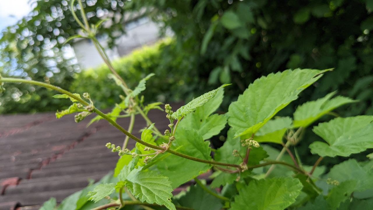 Seit neustem Baue ich Hopfen an allerdings wächst schon seit Jahren im Nachbargarten (unerwünscht) wilder Hopfen.
