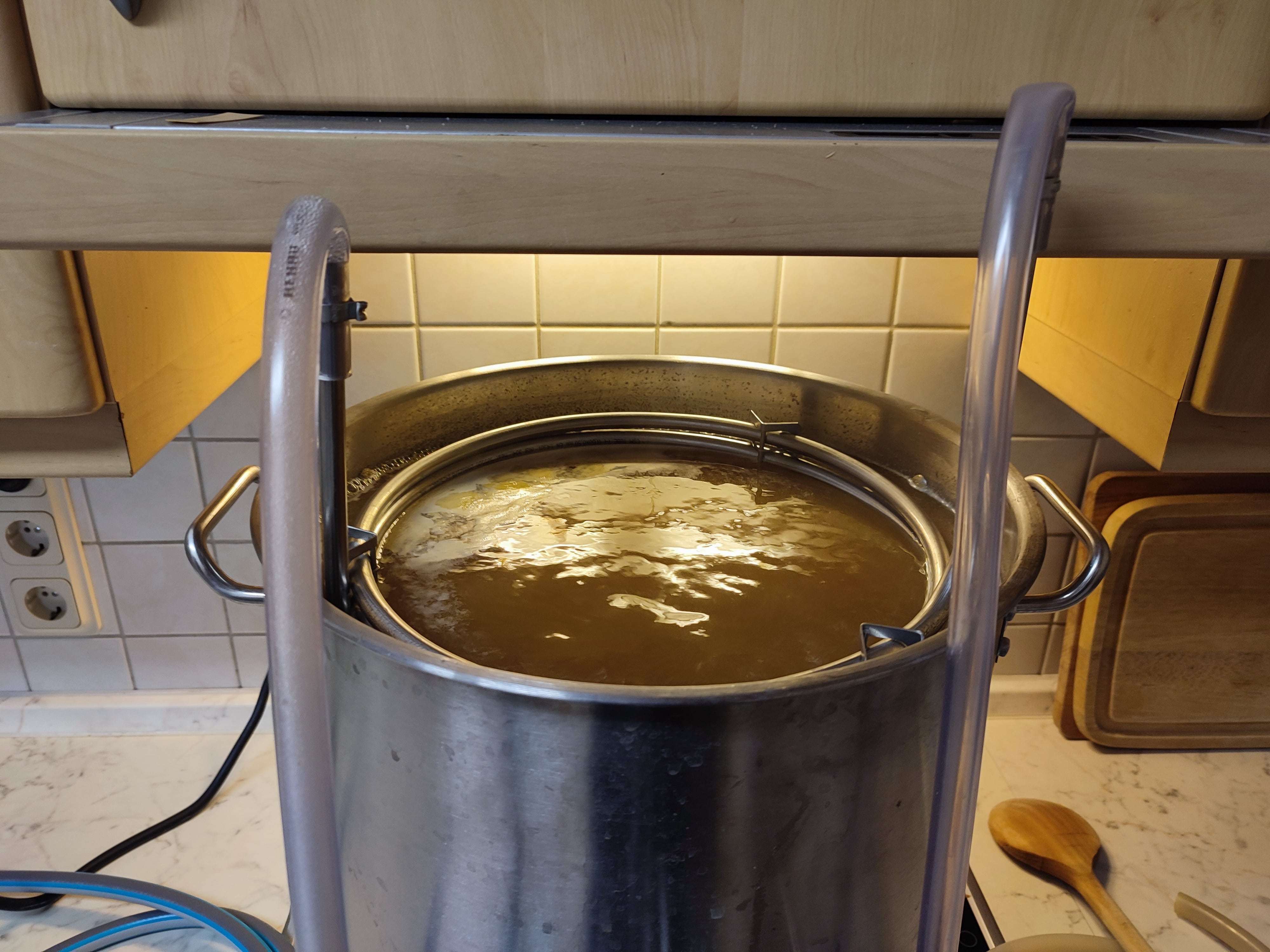 Los ging es schon vor der Arbeit mit dem Aufbau der Anlage Homeoffice sei Dank konnte ich dann bereits um 11:30 Uhr damit beginnen das Wasser für den Hauptguss zu heizen.