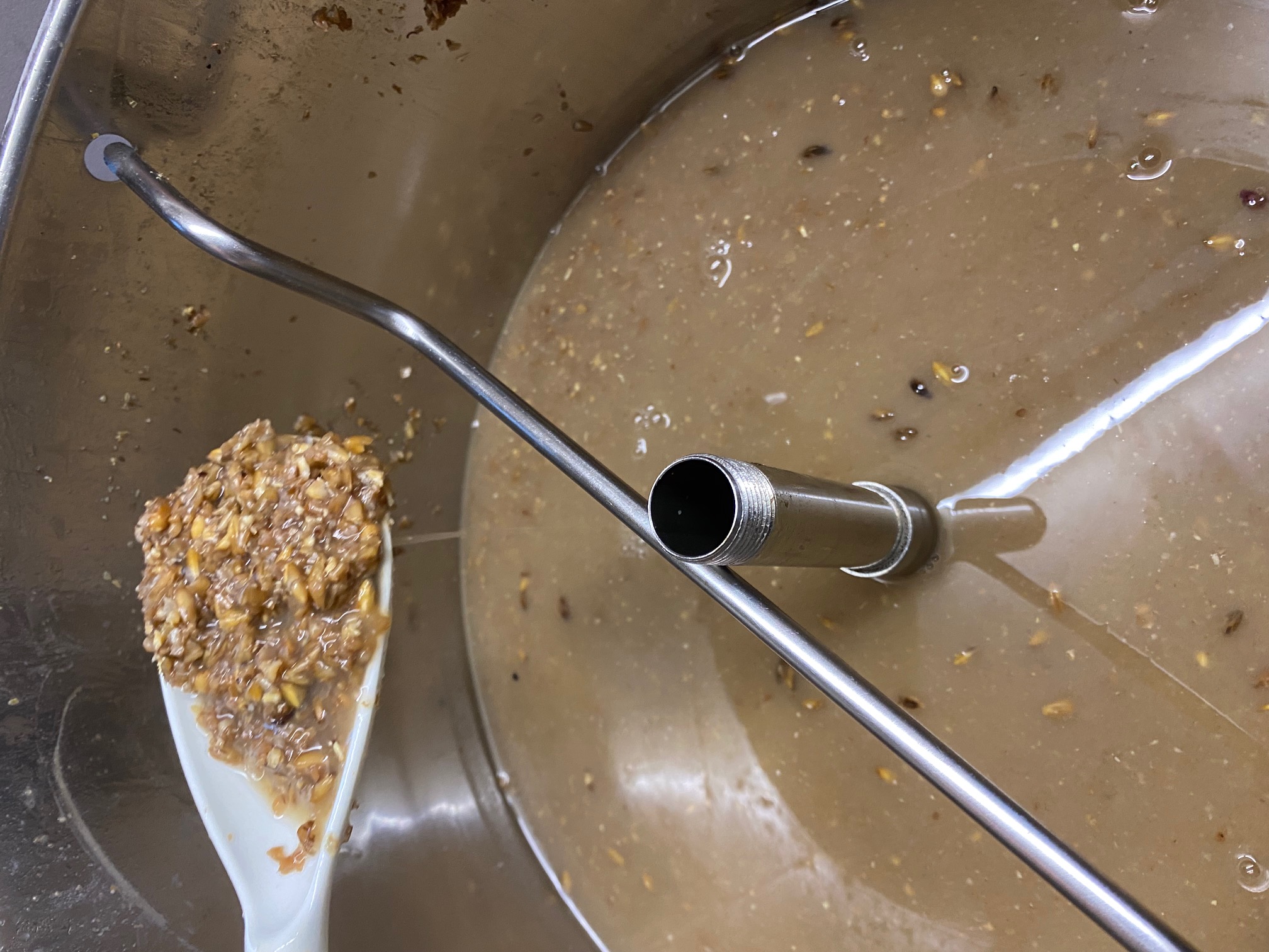 Das Läutern hat zwar etwas länger gedauert (ca. 45-60 min), aber insgesamt floss es noch gut durch's Malzrohr.