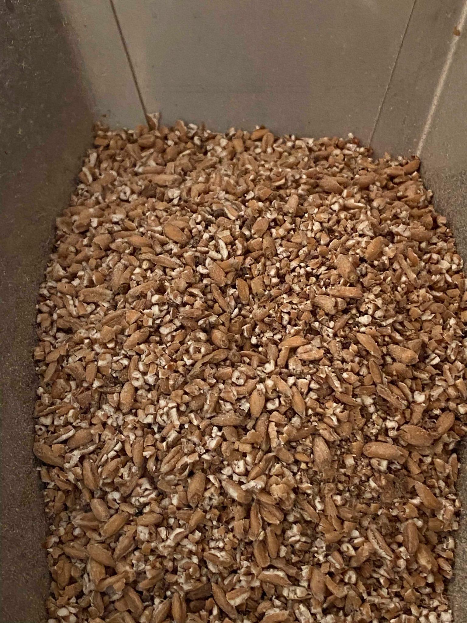 - Dinkelmalz haben wir ohne Konditionierung gebrochen, hatte aber viele ganze Körner dabei, weshalb es 2x durch den Vorgang durfte.