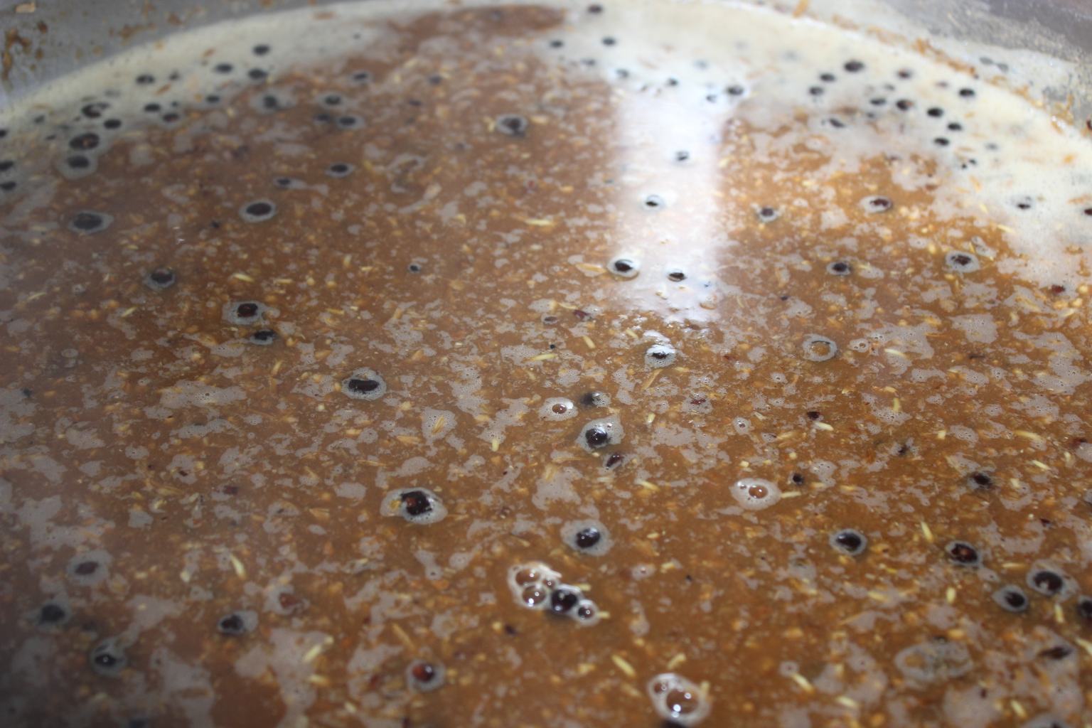 Beim Kochen kommen dann erneut Wacholderbeeren hinein. Und zwar wieder 114g. 50% zu Beginn und 50% bei flameout. :Ahh