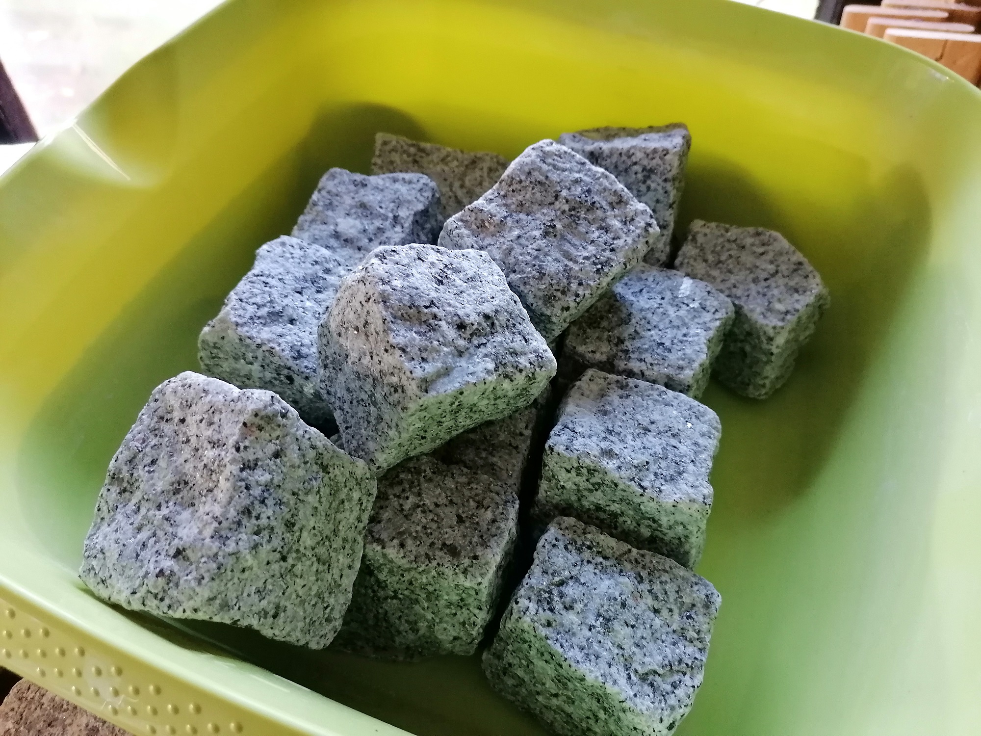 Also sicherheitshalber schon mal ein paar handliche Granitbrocken gekauft; Kantenlänge etwa 5-8cm.