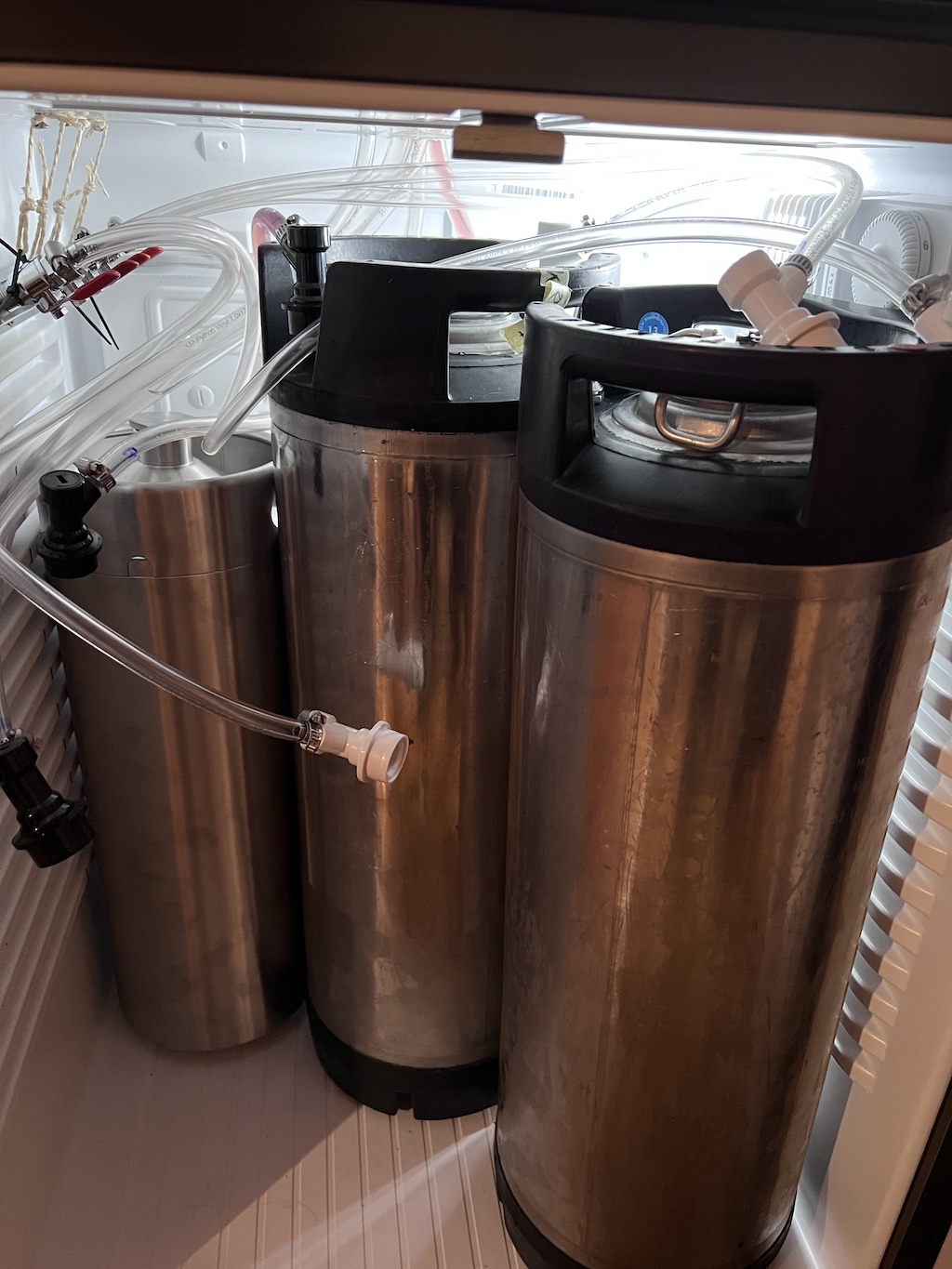 Als Kühlschrank sollte also ein FKU-1800 her. Darin bekommt man 3 19-Liter-NC-Kegs verstaut, außerdem habe ich mir ein schlankes 10-Liter-Keg besorgt.