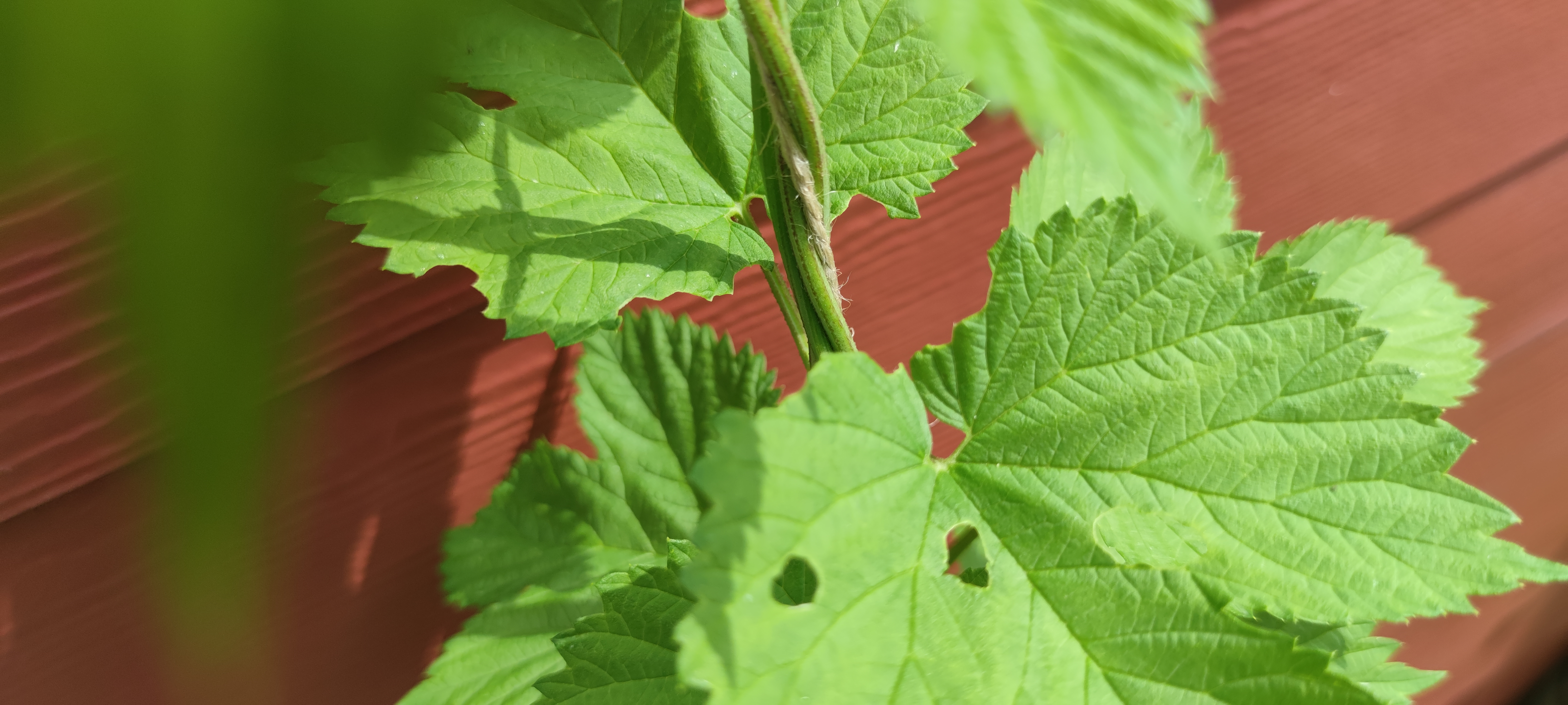 Bei mir sind teilweise garkeine Blätter mehr dran. Die Vögel haben den Hopfen auch schon einmal ausgegraben... Er lag morgens auf der Wiese. Ich weiß nicht ob Vögel Hopfen fressen, aber wenn ich Kohl Pflanze ist der in Null Komma nichts weg