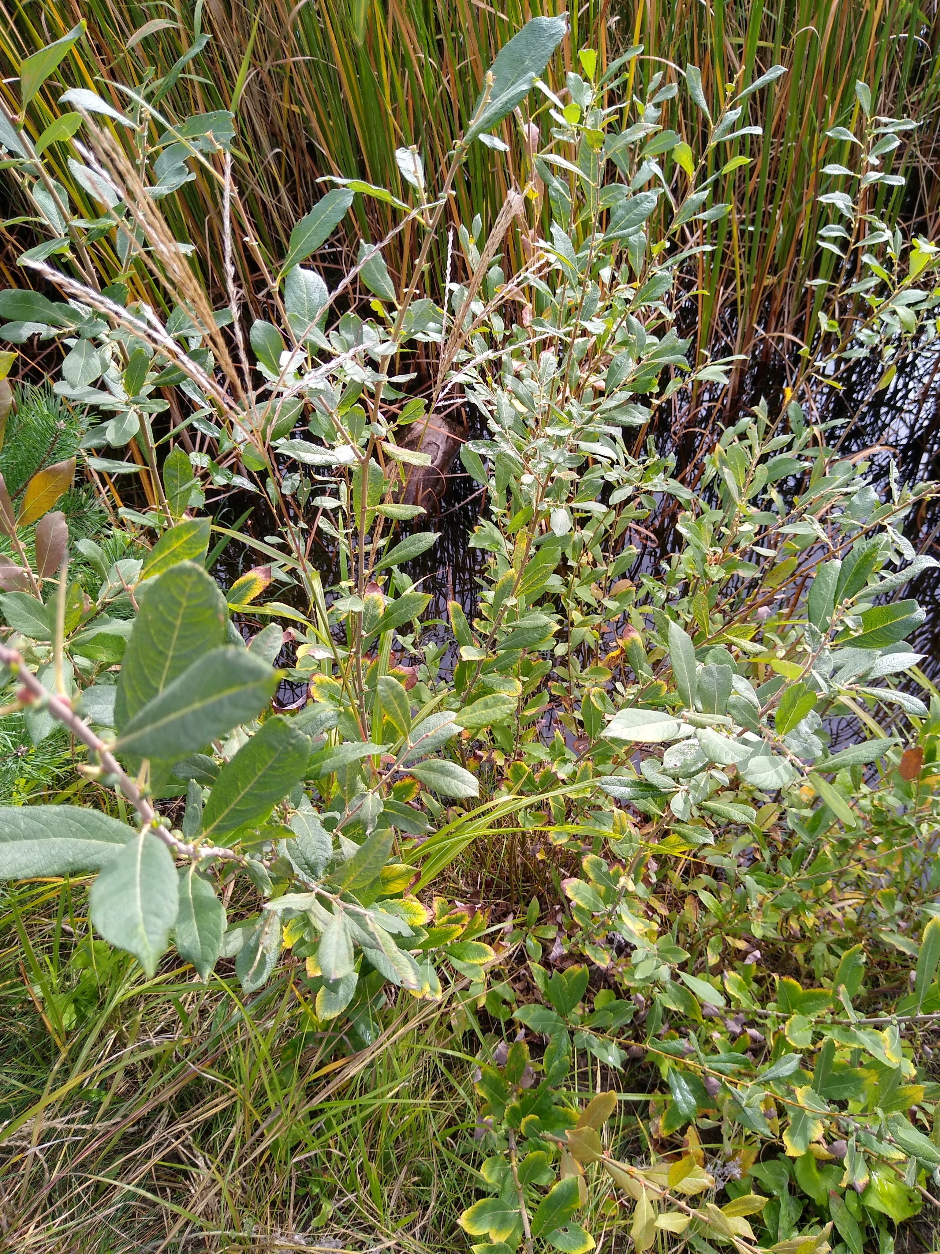 Ich habe das Bild hochgeladen und mit 51% sagt sie, es sei Aschgraue Weide Salix cinerea L., dann noch weitere Weiden und dann mit 5% Gagel und noch weitere Weidenarten.