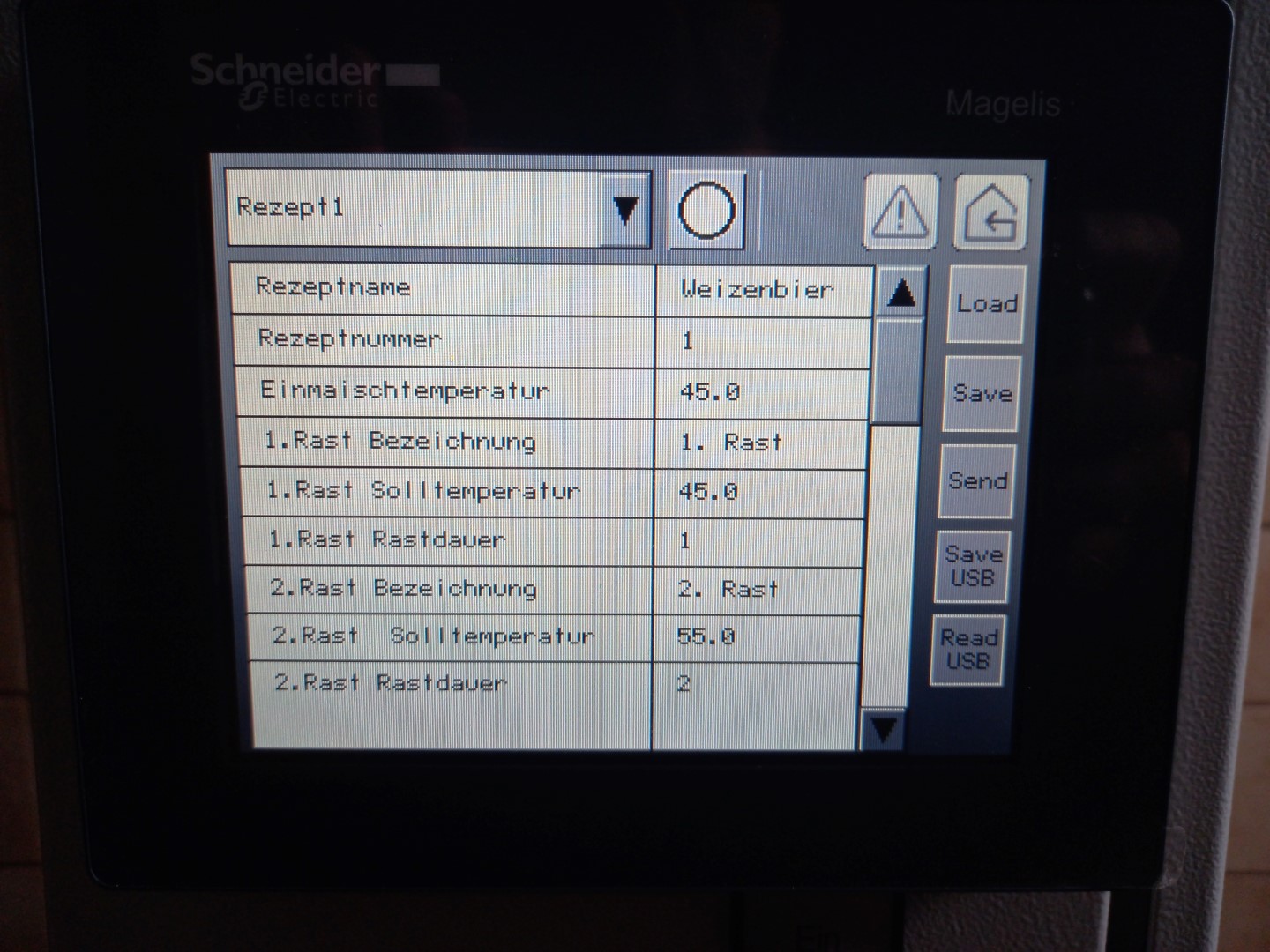 In der Betriebsart Einrichten könne über das Touchpanel Rezepte abgerufen werden und zur SPS gesendet werden. Ebenso kann man Rezepte ändern oder auch neue erstellen. Je Rezept kann man bis zu 5 Rastphasen und 5 Hopfengaben parametrieren.