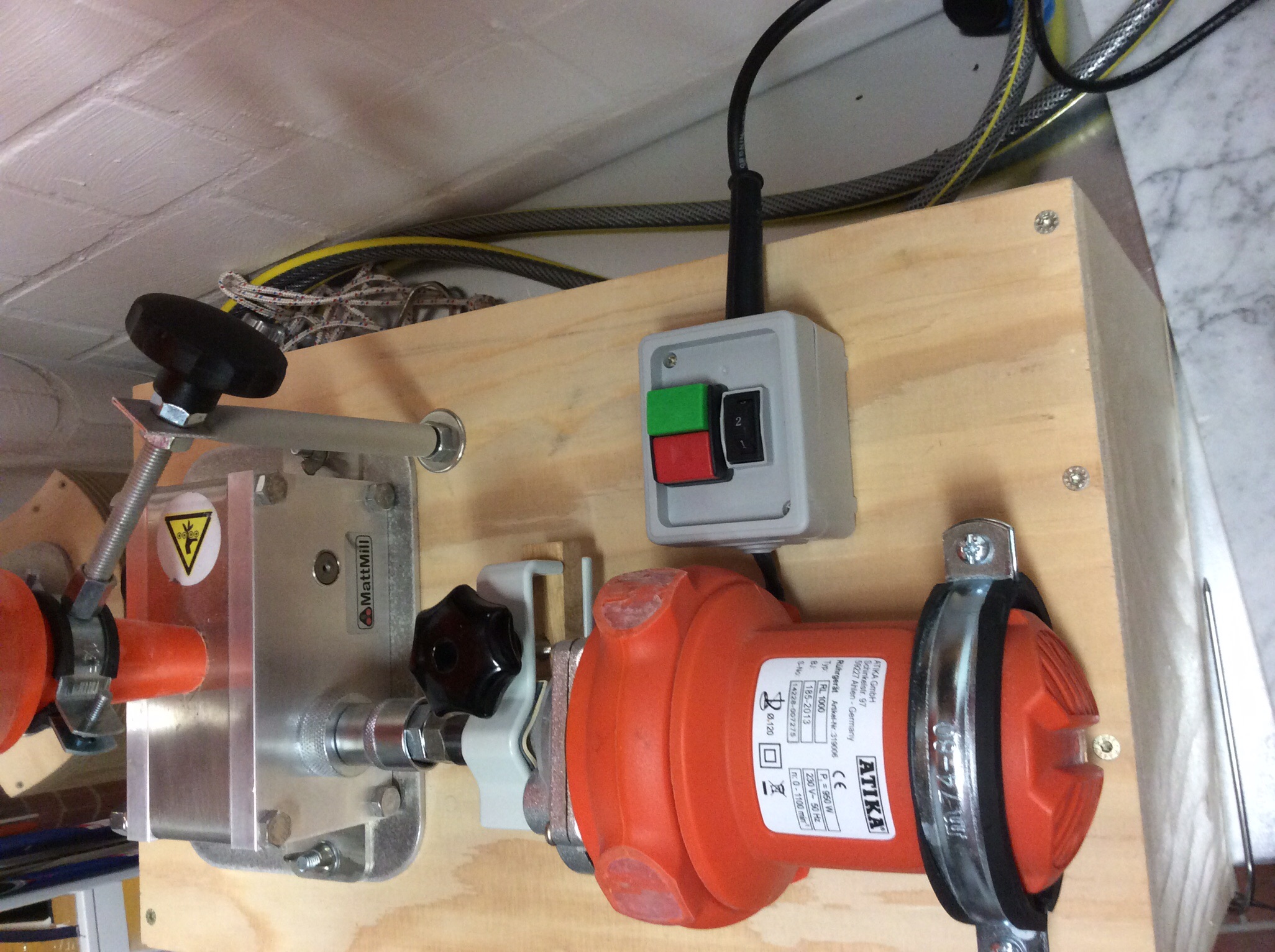 Nachdem ich über die vergangenen 2.5 Jahre mehrere hunder Kilo Malz mit der Corona geschrotet habe, wurde ich des Kurbelns übertrüssig und habe mir eine MattMill Kompakt geleistet. Als Antrieb habe ich mir meine 750W Bohrmaschine mit elektronischer Geschwindigkeitseinstellung vorgestellt. Gem. dem Hersteller hat diese ein Drehmoment von 10Nm.