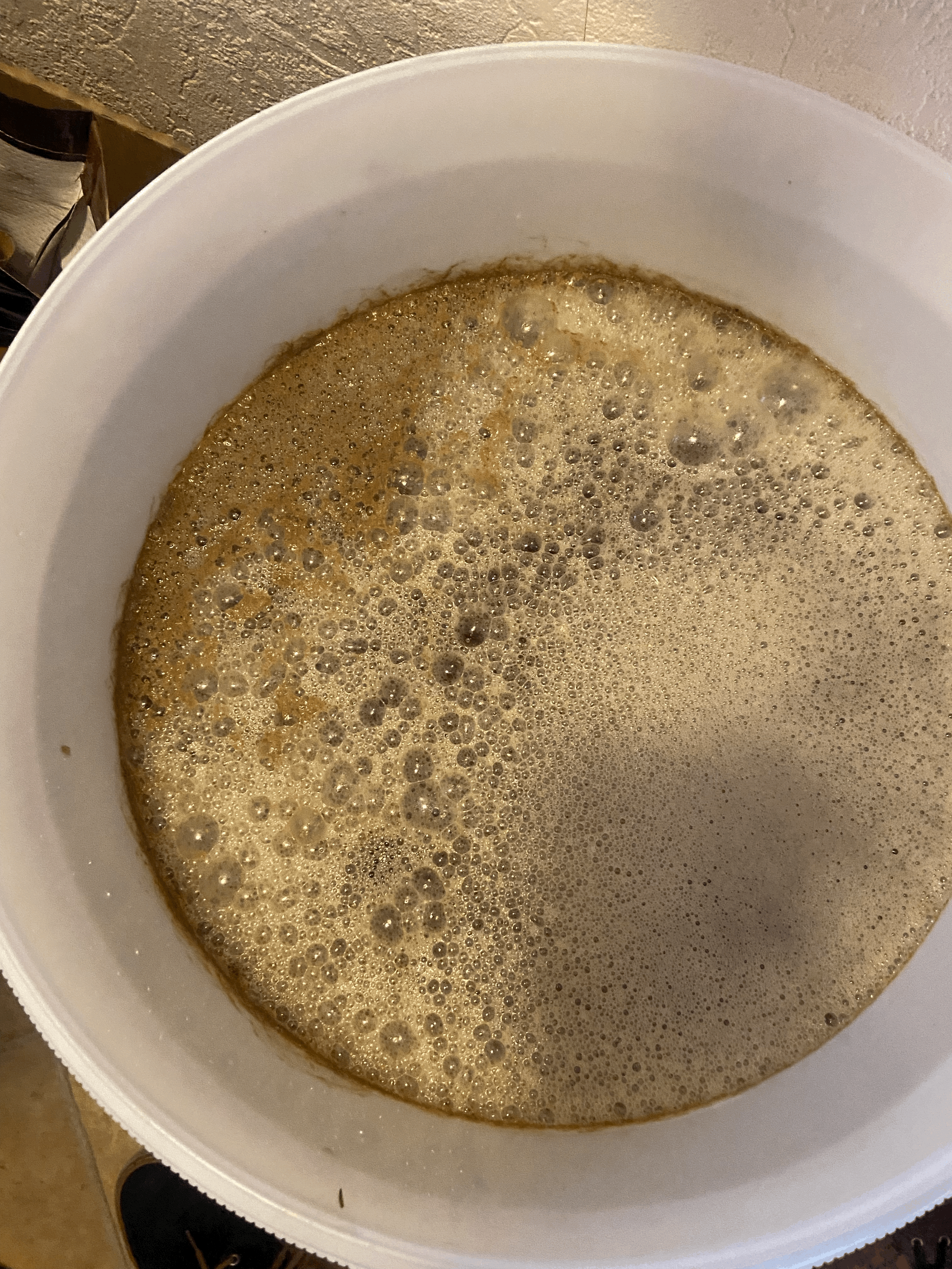 heute Abend, nach nur anderthalb Tagen, ließ die Gäraktivität abrupt nach. Als ich im Garbottich nachsah, war die ganze Kräusendecke abgesunken.