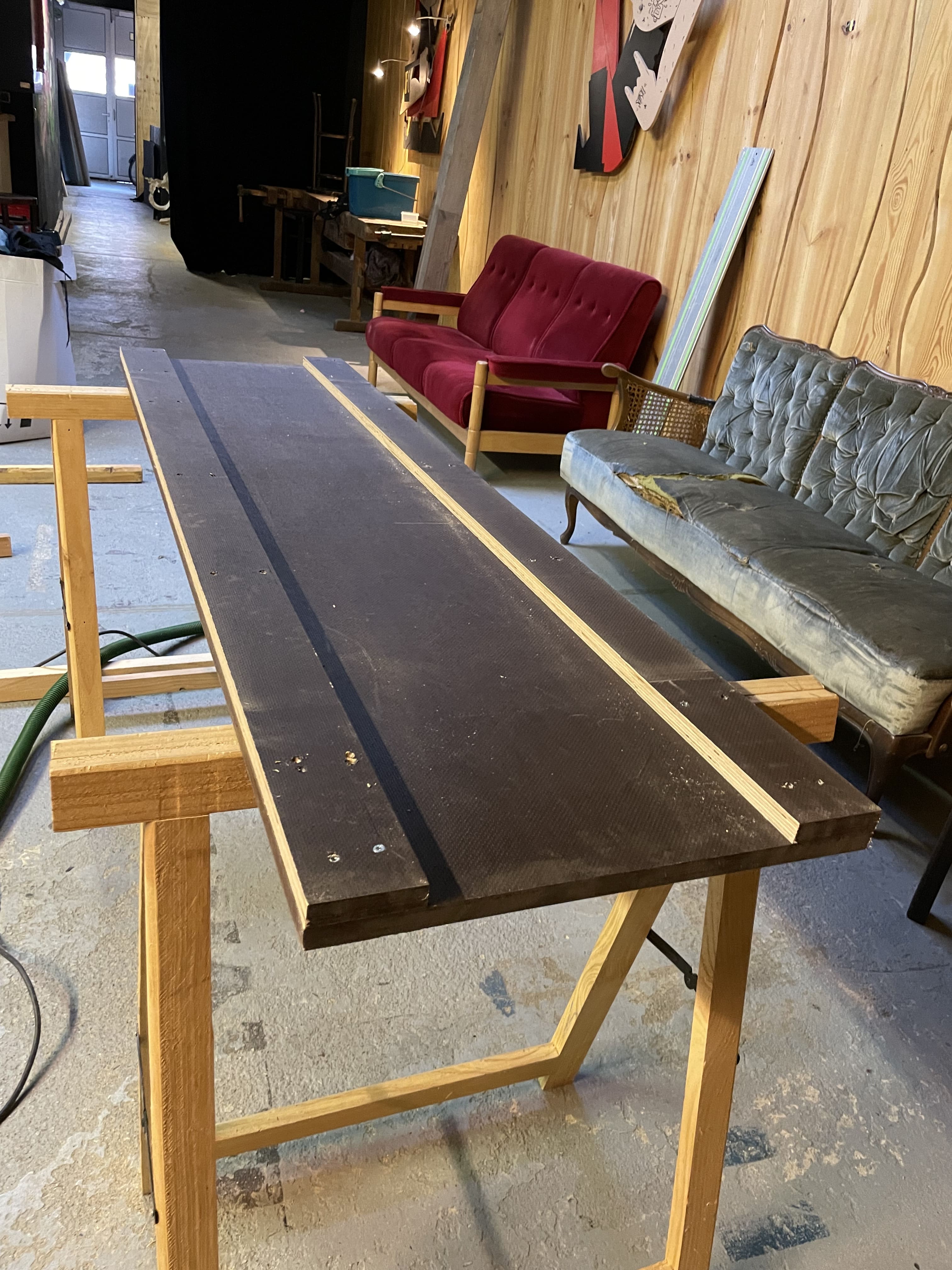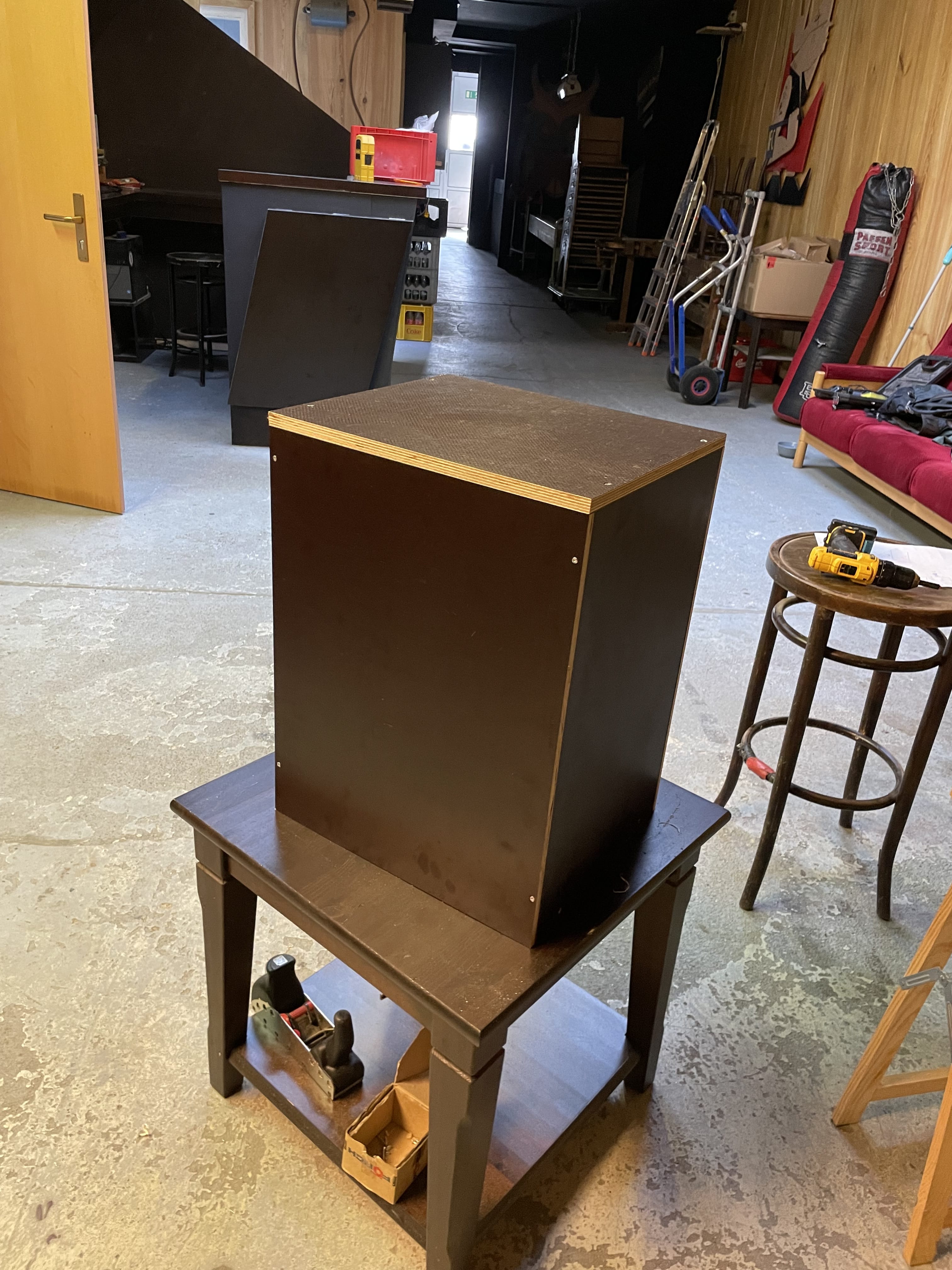 Der mobile Wagen wurde aus einer Sieb/Filmdurckplatte gefertigt die man gut und leicht reinigen kann. Um Material zu sparen habe ich lediglich die Seiten verstärkt auf denen dann die bluewheels montiert wurden. Alle blanken Holzseiten habe ich schwarz lackiert damit nichts aufquellen kann falls dochmal Flüssigkeiten damit in Kontakt kommen sollten.
