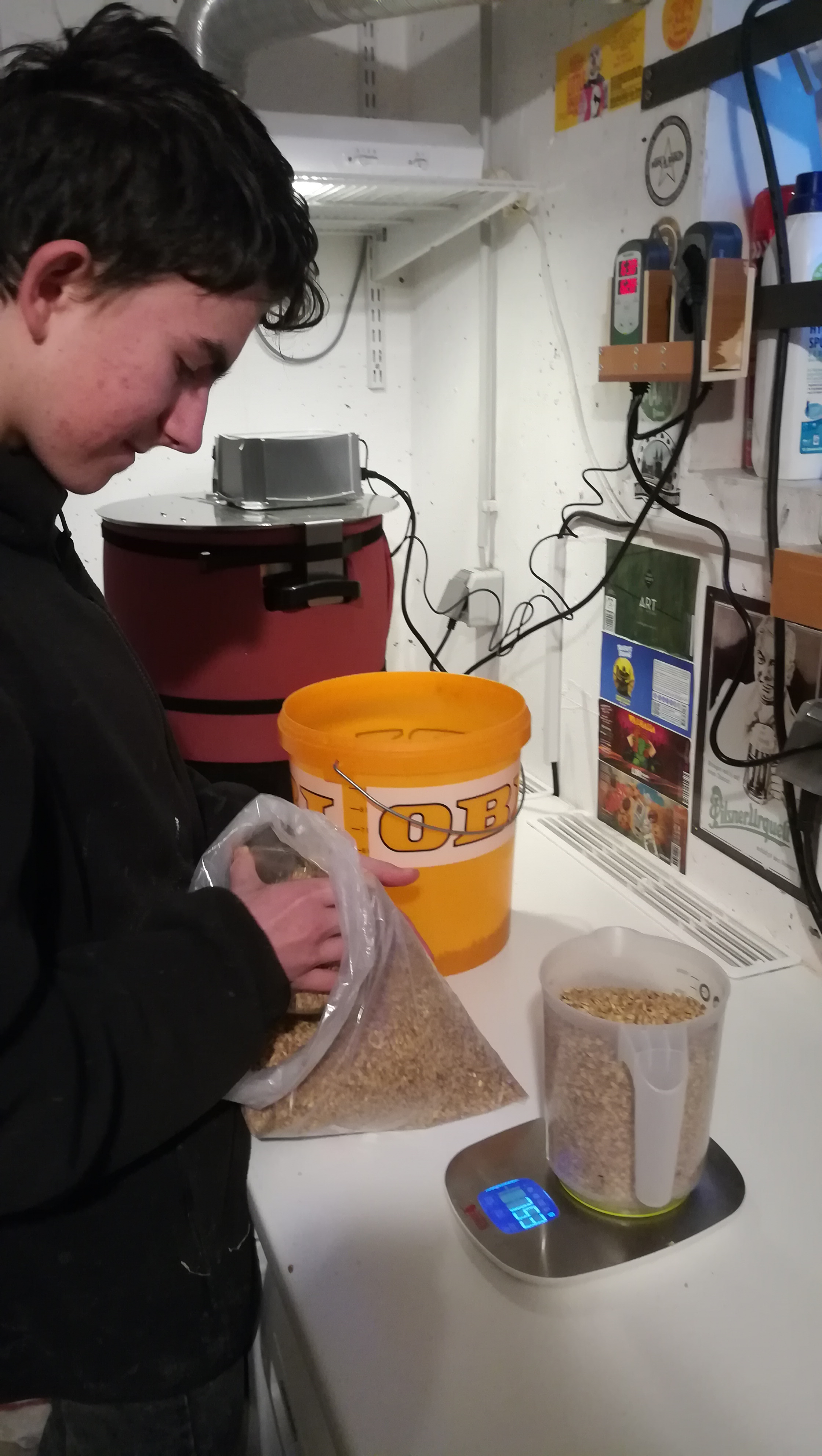 - Wir starten in der Brauecke im Keller. Schüttung steht zum Schroten bereit. Hopfengaben sind abgemessen, die Maronen stehen auch parat.
