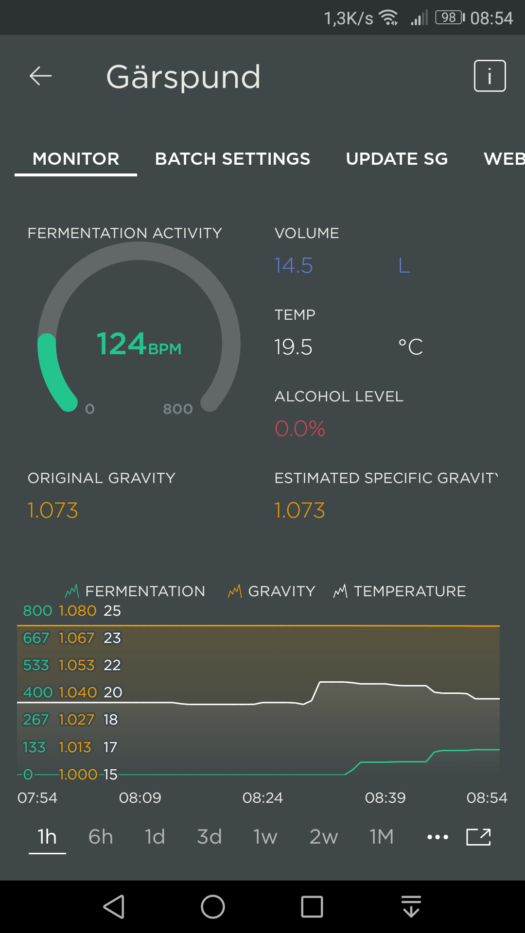 - Heute morgen zeigt der neue Plaato-Gärspund bereits Aktivität.
