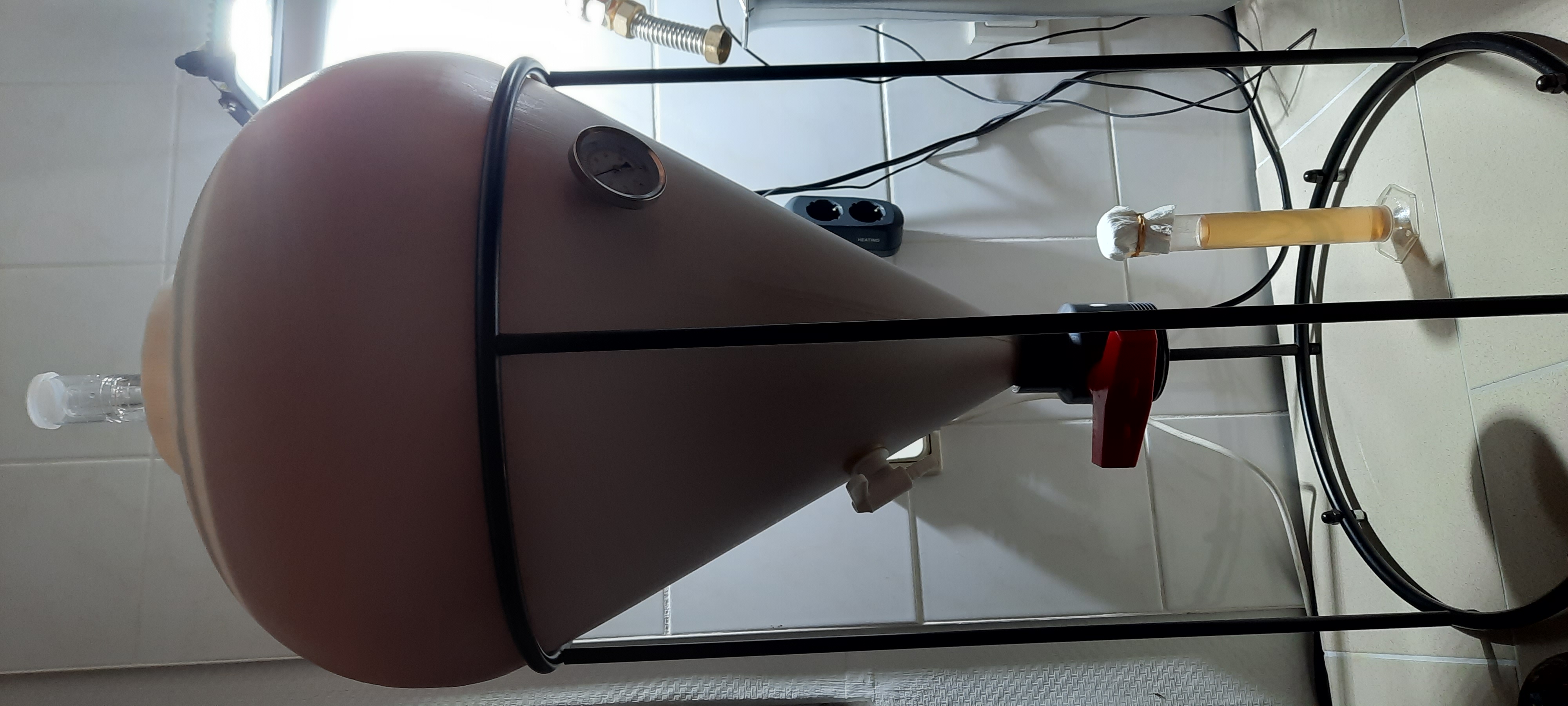 - Über Magnetpumpe durch einen Plattenkühler in den oben stehenden Gärbehälter
