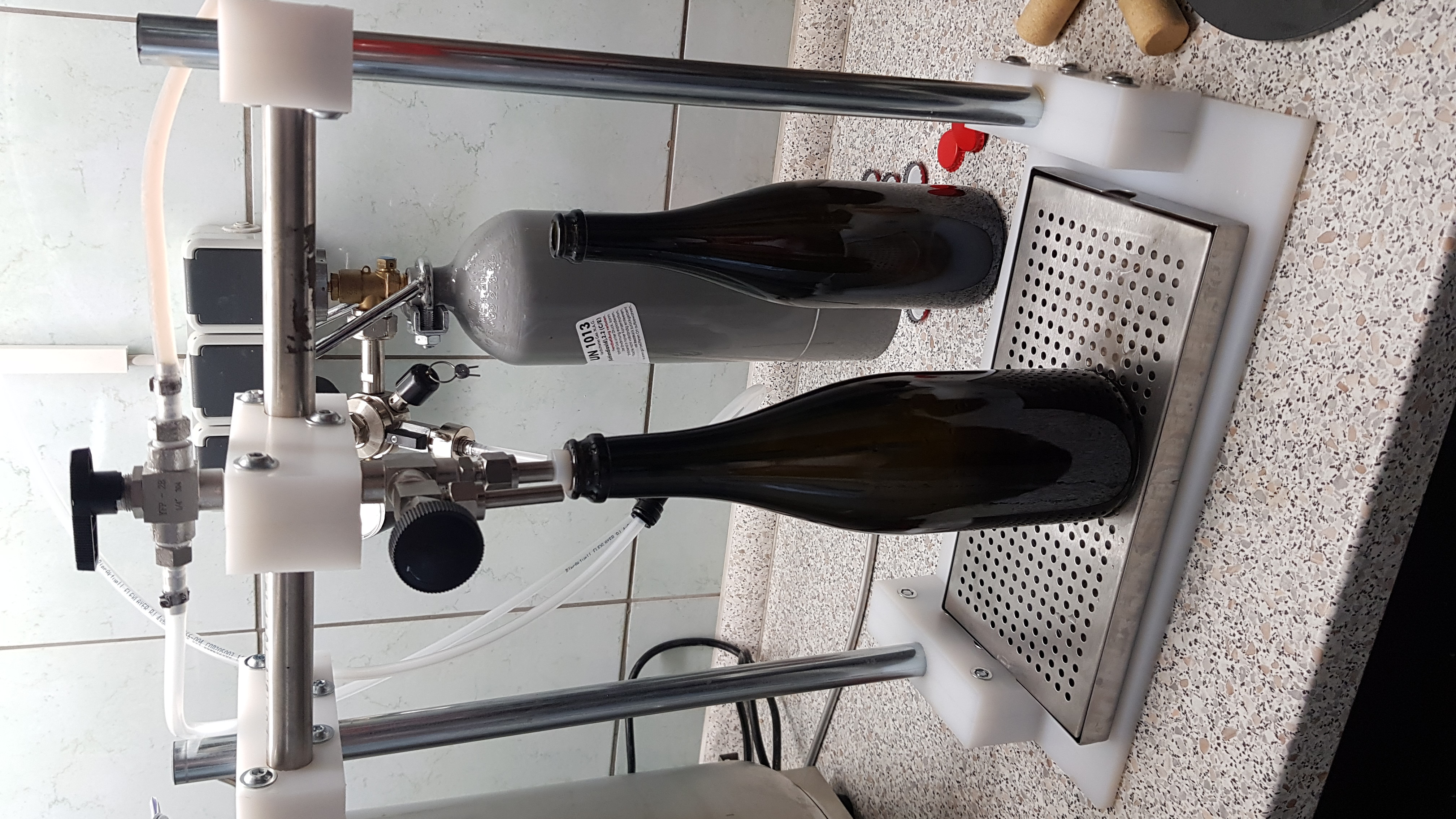 Ein bis zum Flaschenboden reichendes Füllrohr ist eigentlich unnötig (Stichwort Kurzrohrfüller). Du kannst es auch oben abschneiden, so daß es nur knapp in den Flaschenhals reicht. Damit ist jede beliebige Flaschengröße ohne Umbau möglich. Aufgrund des Gegendrucks schäumt das Bier nicht auf, obwohl es zunächst die "Fallhöhe" überwinden muß.