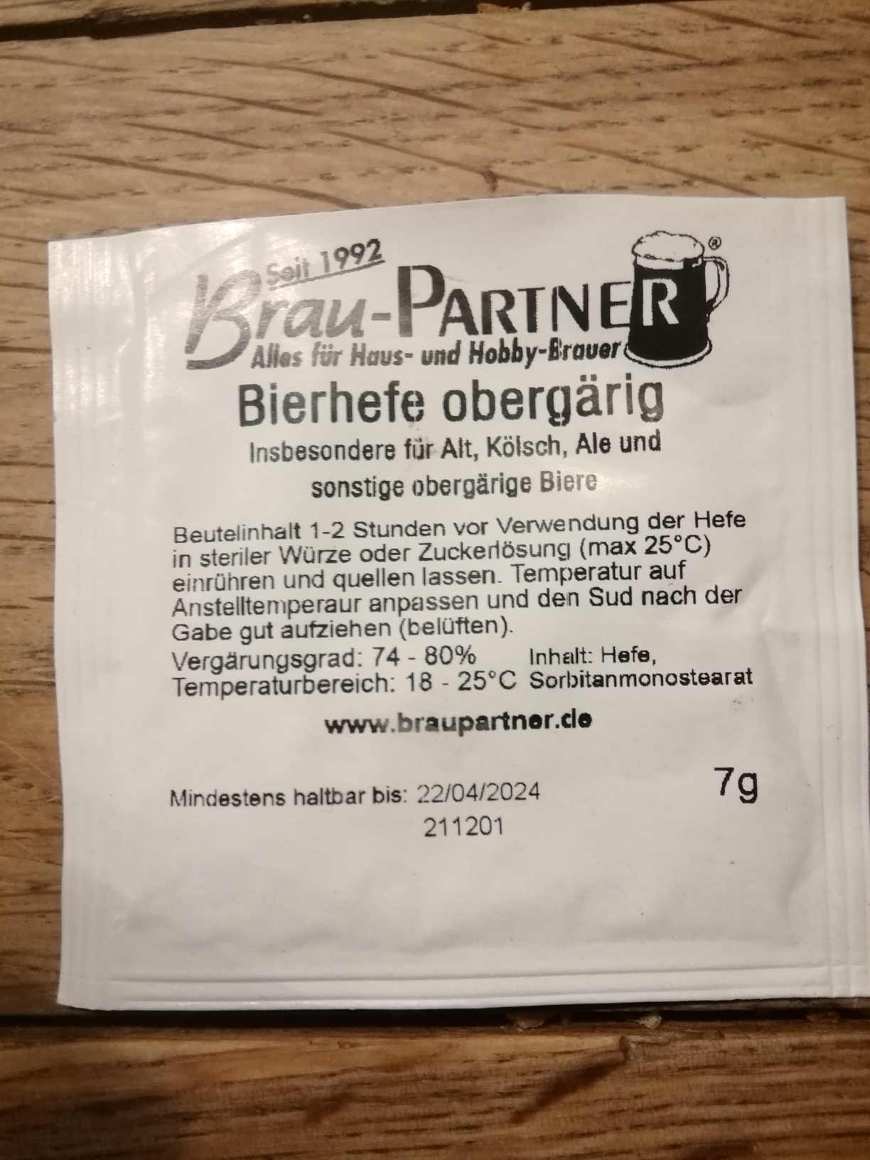 Obergärige Hefe (siehe Foto), Gärung und Messung bei ca. 20 - 21 Grad