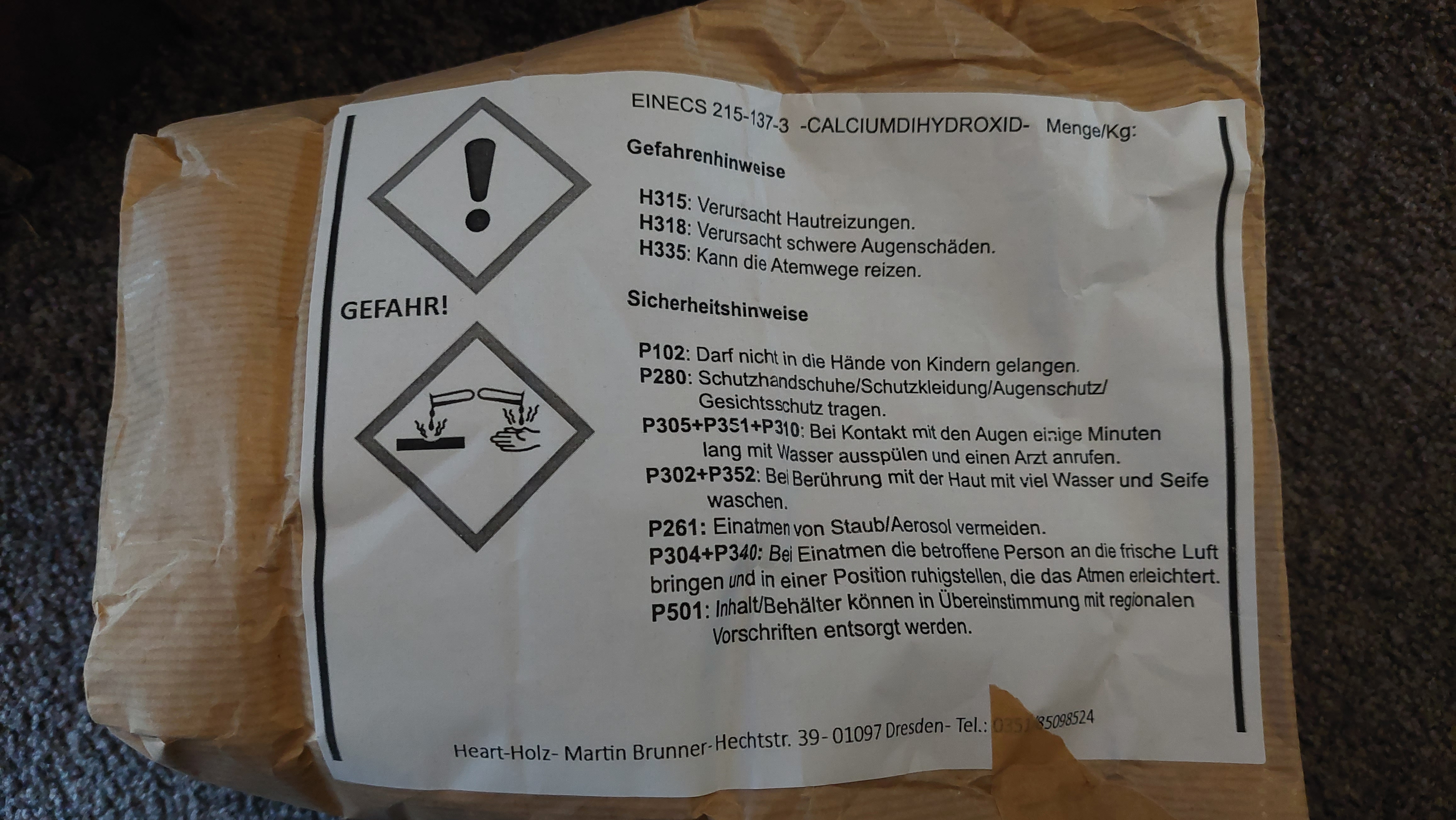 Bekommen habe ich nun "Calciumdihydroxid inkl. diverser Warnhinweise: