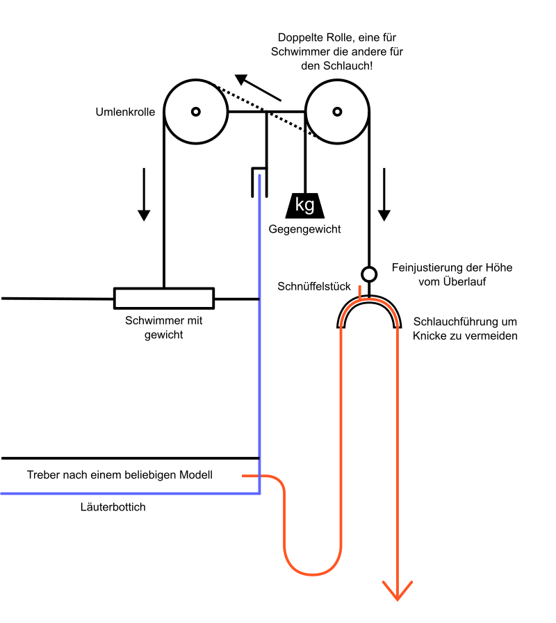 Damit der Schwimmer nicht aufliegt, hat das System Lenz ein kommunizierendes Rohr, in dem der Schwimmer frei von Treber schwimmt.