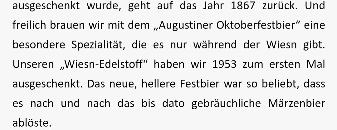 Danke dir für den Hinweis zur Bezeichnung "Wiesn-Edelstoff". War mir auch lange unklar. Hatte mit nem Münchner Kollegen vor Jahren bei ner Maß Augustiner in aller Freundschaft eine kontroverse Diskussion zum Thema. Er bestand auf der Tatsache, dass Augustiner auf der Wiesn seit Jahrzehnten Edelstoff ausschenkt. Mein Hinweis auf das Oktoberfestbier galt für hin nicht. Klar wurde es mir erst, als Augustiner den Text zum Oktoberfestbier geändert hat und beide Begriffe verwendet: