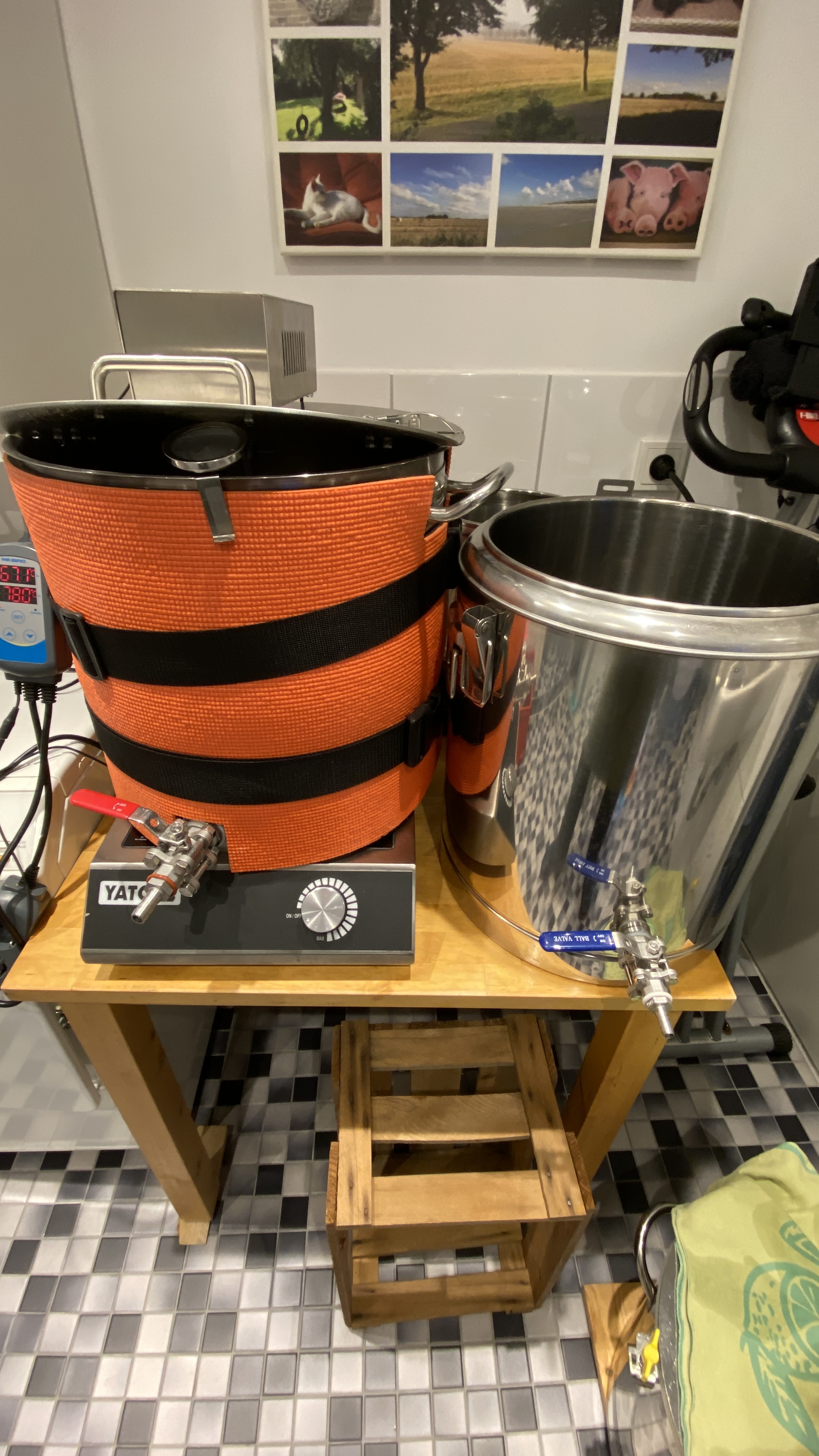 Das Setting passt für mich. Meist mache ich so 20-30L Sude. Ich braue gern mit meinem Brau-Buddy-Bernd open Air, aber wenn es zeitlich nicht passt, dann auch mal zu Hause. Auch open Air, oder wenn es kalt ist, auch im Keller, wie hier.