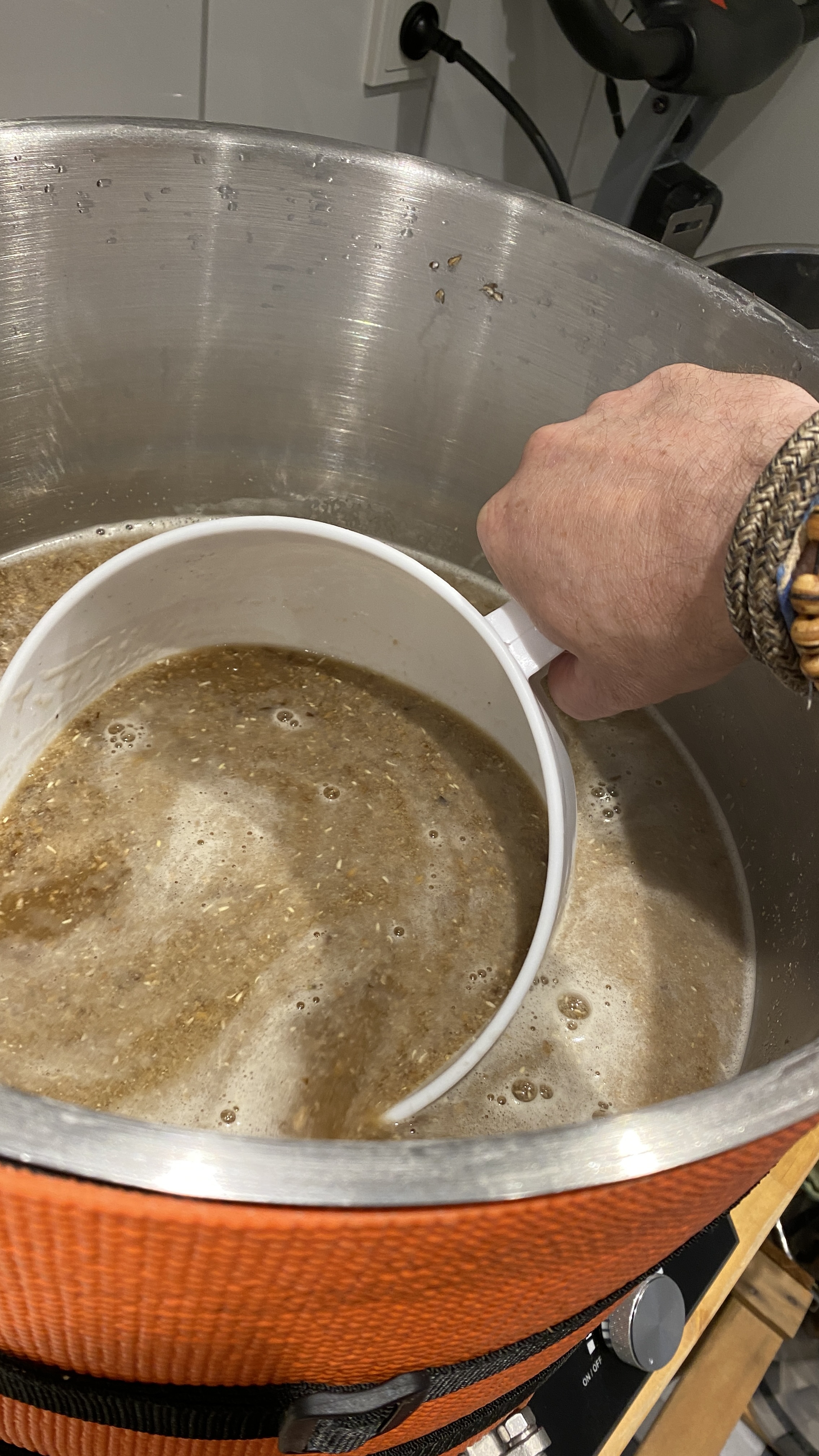 Brauen tue ich inzwischen mit einer Yato Induktionsplatte, einem stabilen 36L Kessel und einem 25L Thermoport. Der 310T-B Inkbird übernimmt die Steuerung der Rasten, das Rührwerk das Vermischen. Auf einer zweiten kleinen Induktionsplatte erhitze ich den Nachguss in einem kleinen 15L Topf.