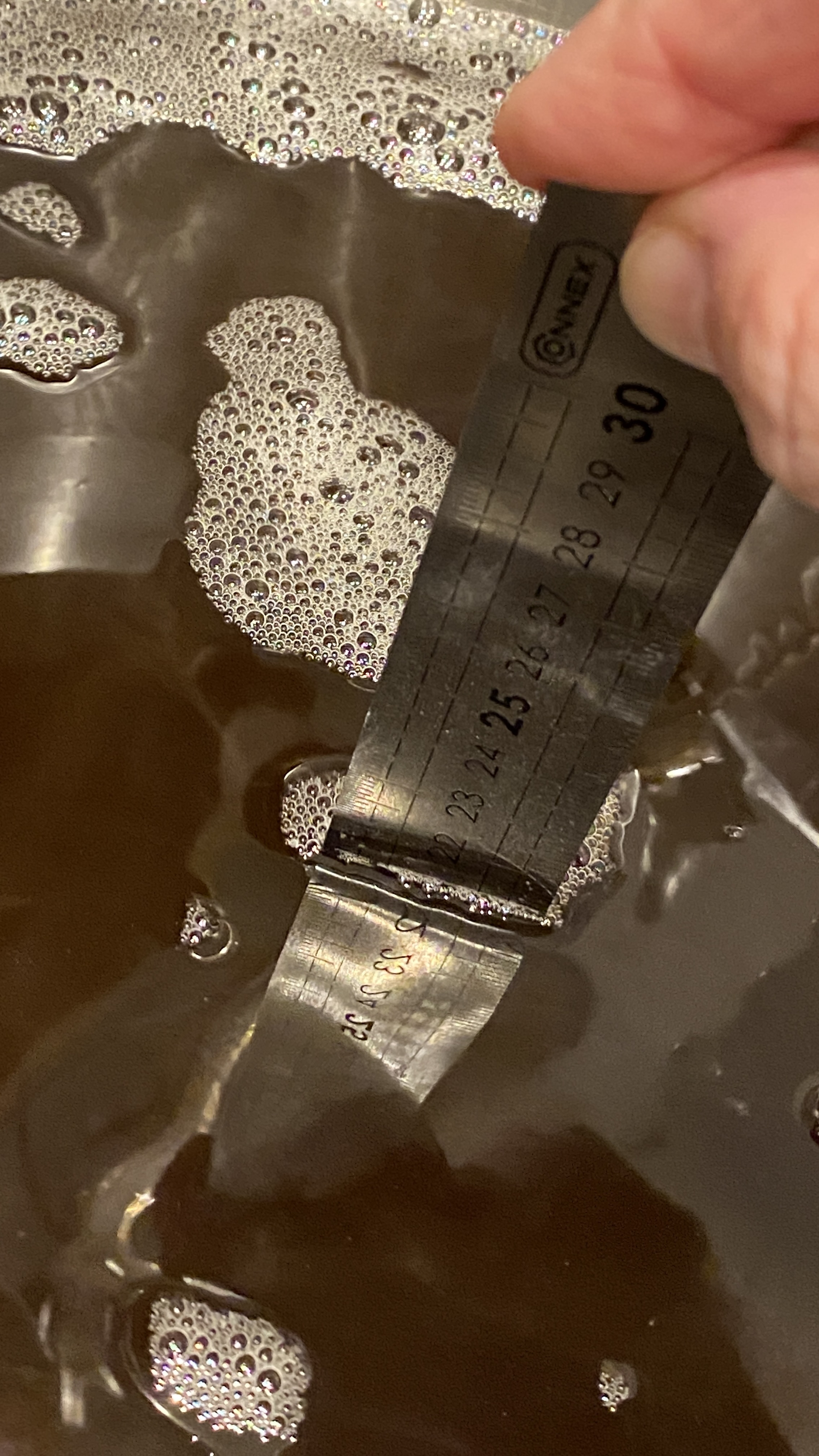 . Zum einen ist der Gärbehälter dann sterilisiert und mein Maischwasser einmal aufgekocht und nicht mehr so kalt.