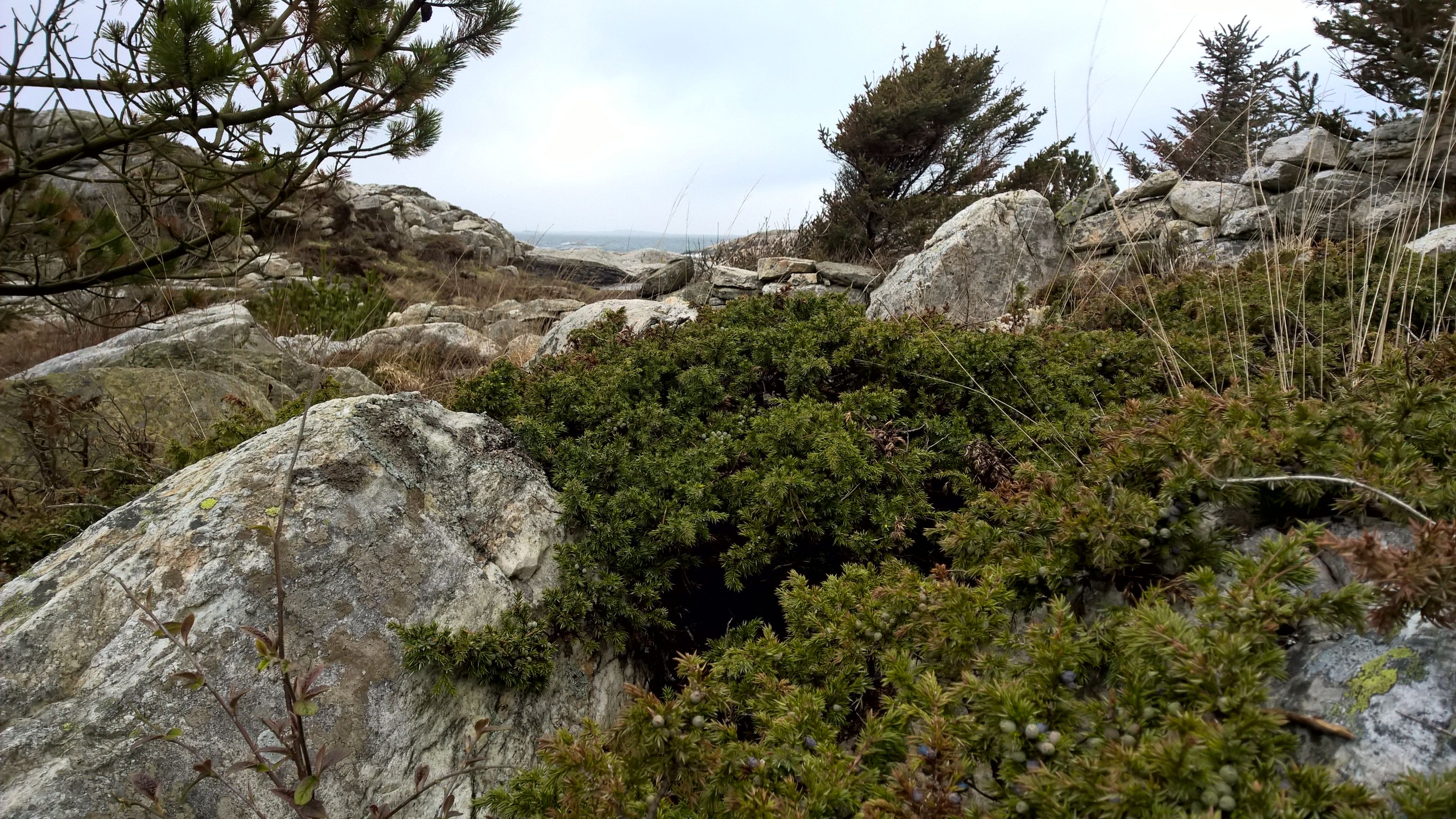 Am Samstag ging es los zum Wacholder ernten. Zum Glück wächst das Zeugs in Norwegen wie Unkraut, so dass ein kurzer Spaziergang hinterm Haus schon zum Ziel führte. Ich hätte mir sicher auch noch mein Irish Moss von den Felsen holen können.