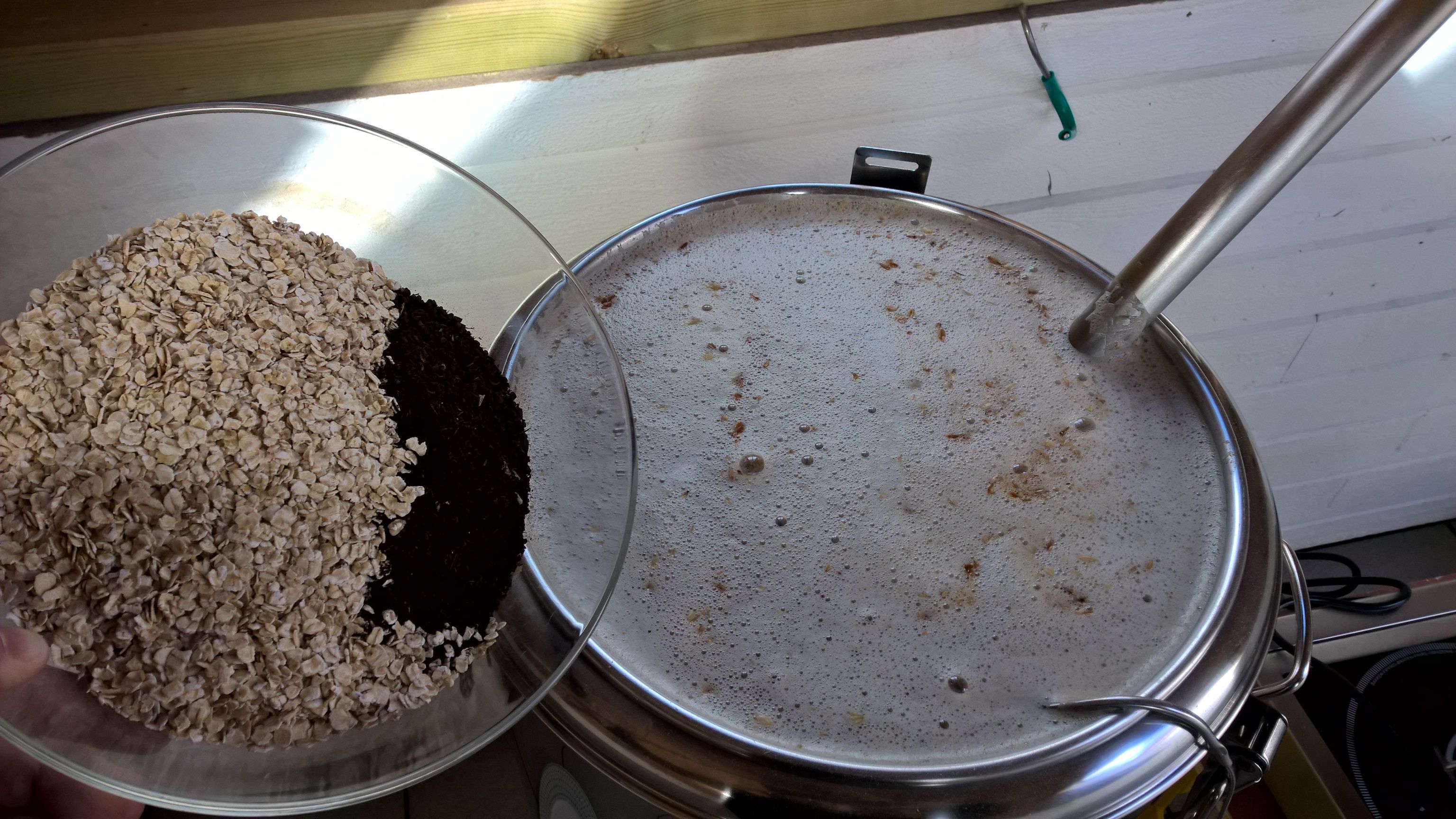 da bin ich allerdings auch gespannt. Die Idee mit dem "Vorsud" ist ja nicht von mir, sondern anscheinend gängige Praxis bei norwegischen Bauernbrauern. Einen Wacholdergeschmack, wie man ihn von den Beeren kennt, ist wohl nicht zu erwarten. Der Wacholdersud schmeckte irgendwie, hmm - frisch, ätherisch - ja auch nach Wacholder, aber auch etwas harzig. Eigentlich ganz interessant - trotzdem habe ich kurz vorm Einmaischen nochmal überlegt das Ganze zu verwerfen und nur mit Wasser und Beeren zu arbeiten. Bleibt abzuwarten was davon im Bier übrig bleibt.