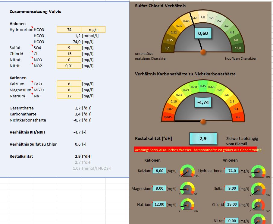 Ich wollte heute eigentlich meinen Sud für die Bundesheimbrauspiele machen. Normalerweise habe ich immer mit Calciumsulfat und Calciumclroid das Wasser aufgesalzen und mit Milchsäure den PH/Restalkalität eingestellt. Da ich aber jetzt gar nicht weiß, was im Wasser drin ist wäre das ein kompletter Blindflug. Ich habe daheim zwar einen PH-Messer, also Maische-PH könnte ich einstellen, aber mir macht ein bisschen Angst, dass ich ja nicht weiß was sonst noch drin ist. Gibt es da eine Möglichkeit, dies irgendwie zu berechnen oder macht das einfach keinen Sinn?