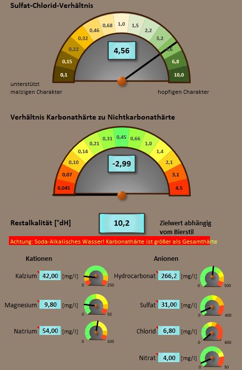 mit diesem Wasser solltest Du kein Bier brauen: Stichwort: Natrium-alkalisch. Du bist in der Tat völlig im Blindflug unterwegs und kannst auch kurzfristig nichts machen außer dir einen Mischbettvollentsalzer oder eine kleine Osmoseanlage anzuschaffen. Heute bestellt, bis Montag geliefert :Greets Osmoseanlagen benötigen Pflege und regelmäßigen Filtertausch. Dennoch mein Mittel der Wahl, da ich hinter die Anlage eine UVC-Lampe geschaltet habe. Mischbettvollentsalzer wäre mir persönlich (!) zu viel Gefrickel.