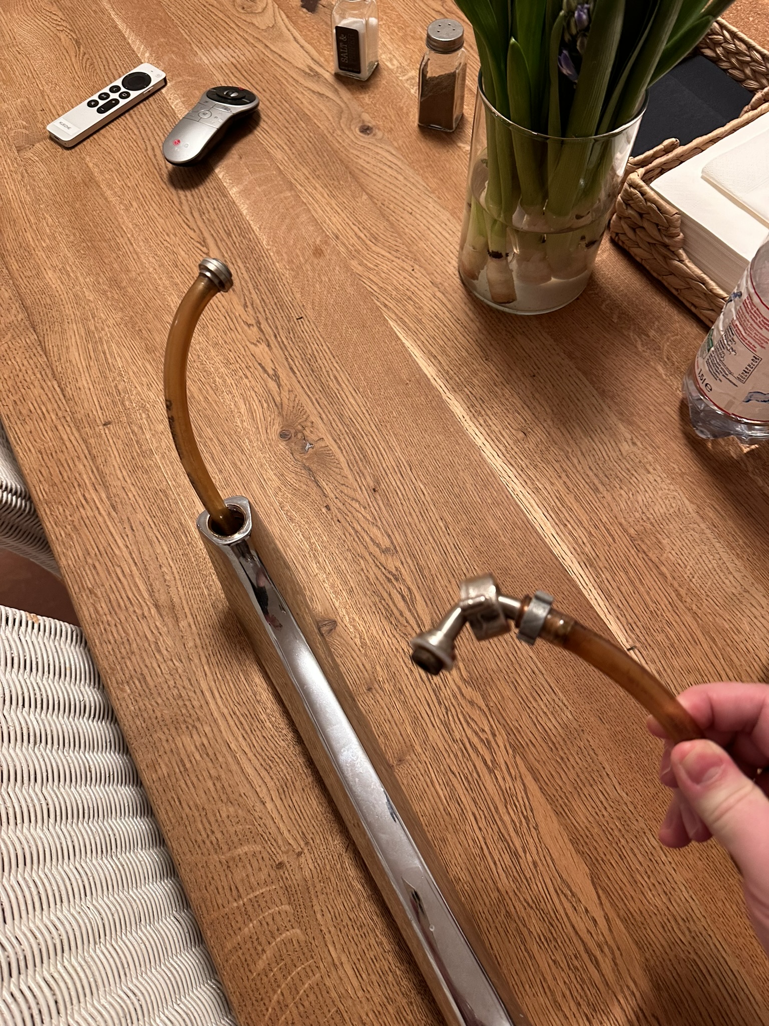Ich weiß nicht genau wie das Stück oben montiert ist, hab so einen kurzen Anschluss noch nicht gesehen, sieht auf dem Foto aber auch ein bisschen aus wie Tülle aber ohne Schelle?