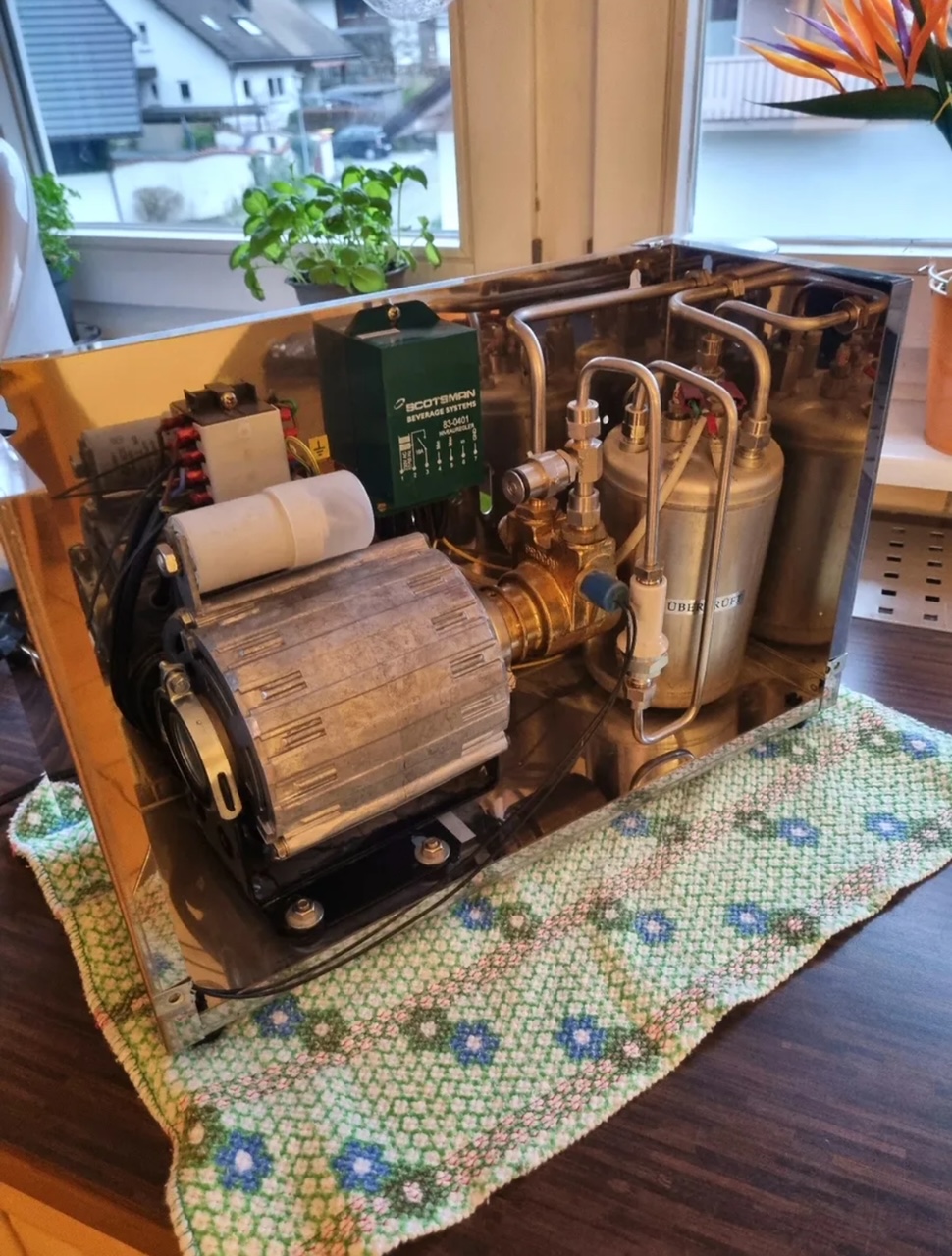 ich habe mir in ein 12 Jahre alten Hatek Warmkarbonator inkl. Zubehör zur Erzeugung von Sprudel angeschafft. Das Teil war nach 30 Minuten provisorisch angeschlossen und macht sein Job grundsätzlich einwandfrei, es ist kein Unterschied zum gekauften festzustellen. Kinder und Frau sind grundsätzlich happy damit