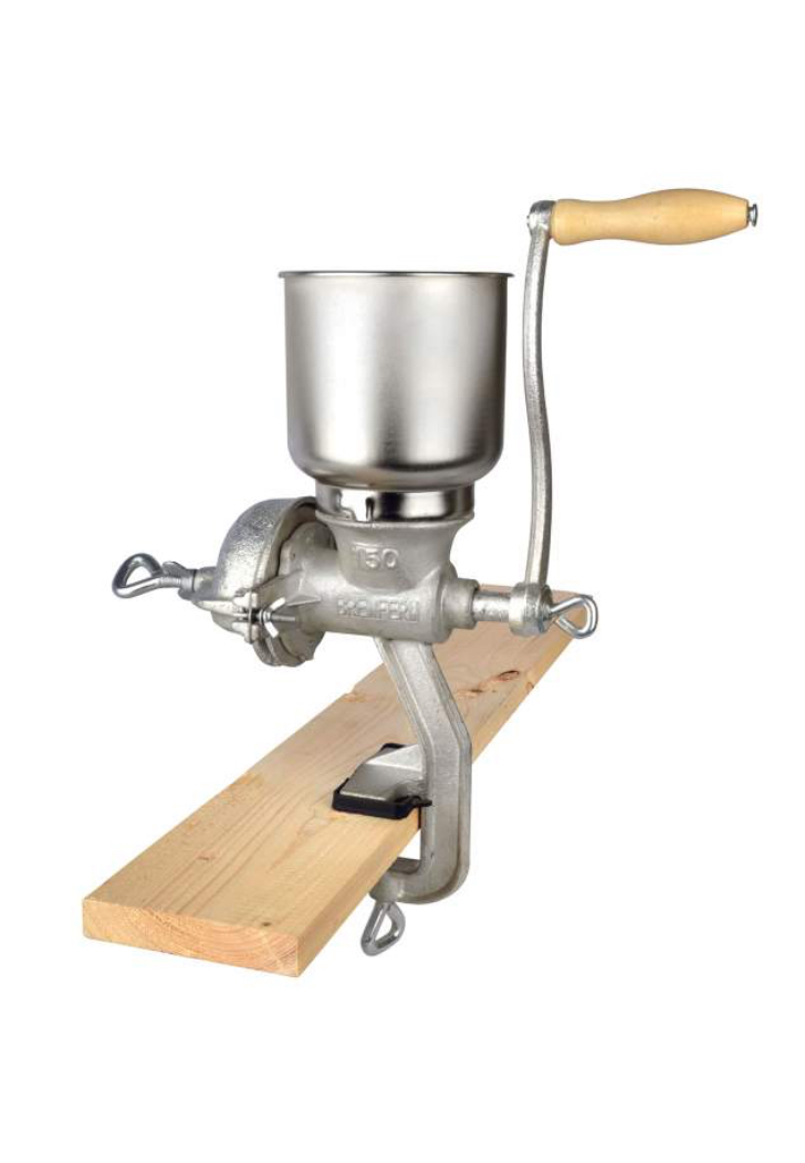 Ich habe seit ein paar Monaten eine ganz einfache Schrotmühle mit Handkurbel - analog zum Referenzbild