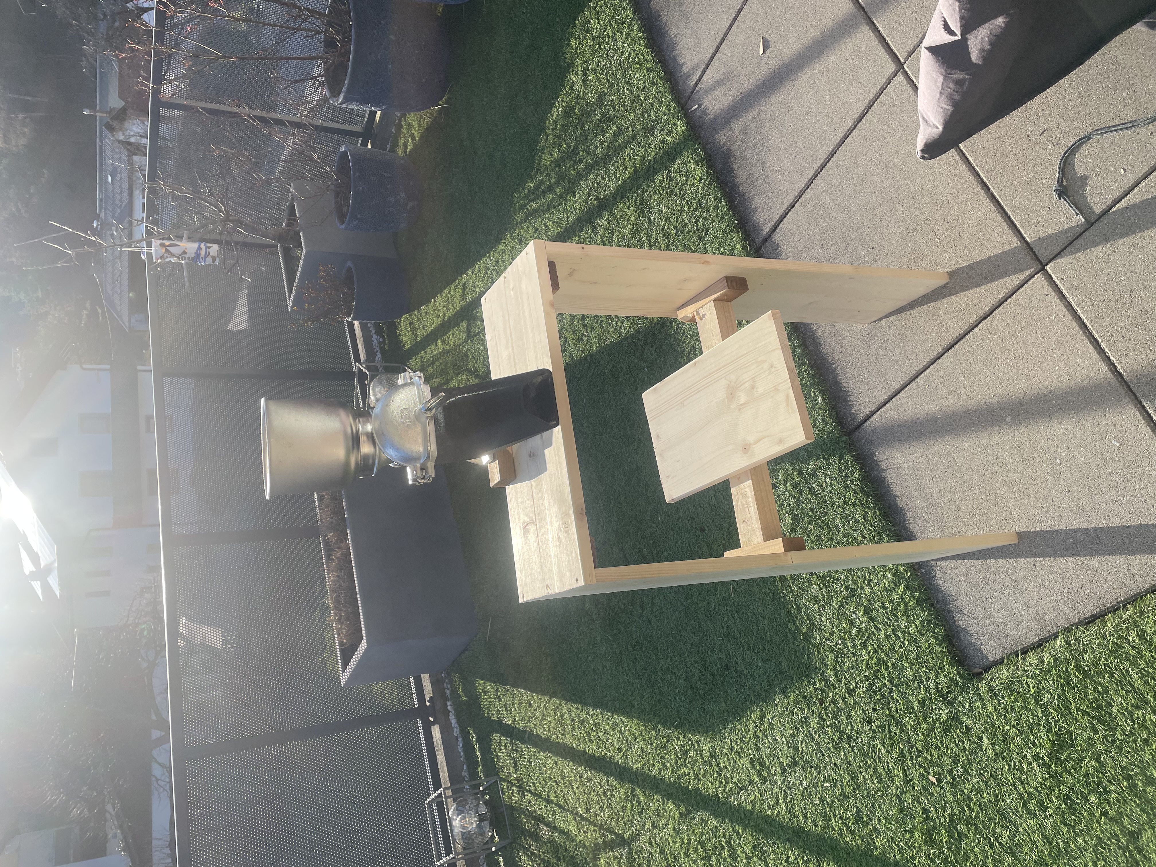 Eventuell musst du die Konstruktion mit einem zusätzlichen Brett quer aussteifen, damit sie beim Gekurbel nicht kollabiert.