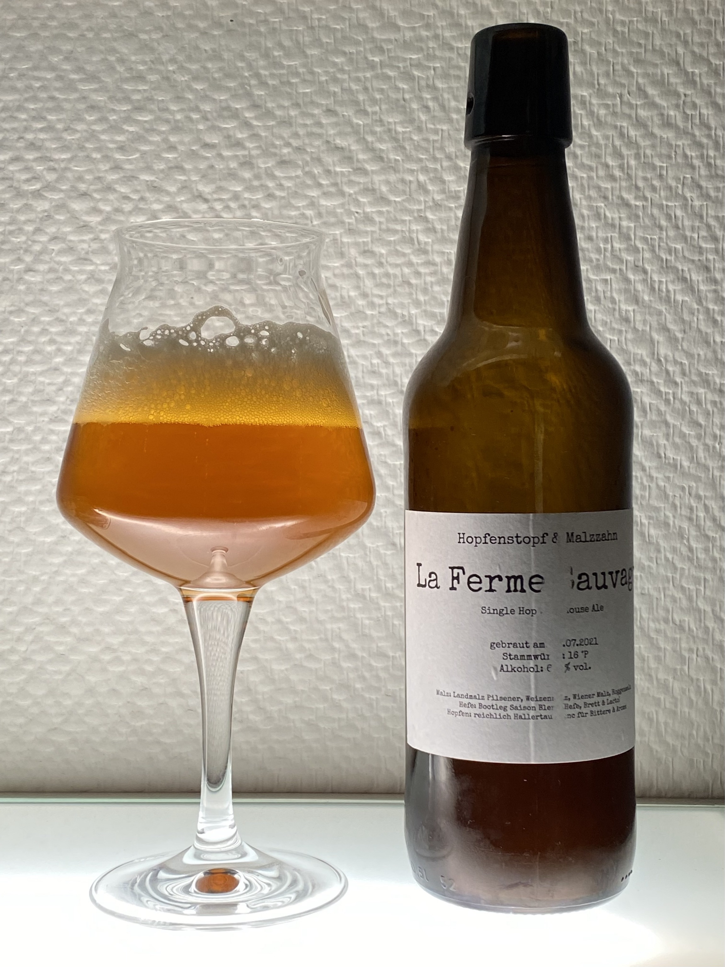 Zum Brauwasser kann ich nicht allzu viel sagen. Wir haben hier einigermaßen weiches Wasser mit relativ geringem Sulfat- und Chloridgehalt. Normalerweise salzen wir es etwas auf (die Wassermenge in der Tabelle bereiten wir doppelt in zwei Glühweinkesseln auf). So passt es auf jeden Fall recht gut. Fertig sieht das Bier dann so aus. Mittlerweile gibt es "La Ferme Blanche" mit etwas höherer Stammwürze (lecker, intensiv aber gefährlich), eine etwas schwächere Variante "La Fermette Blanche" und die wild vergorene Version "La Ferme Sauvage". Es außerdem noch ein mit Brett und Lactos vergorenes Saison aus dem Eichenfass.