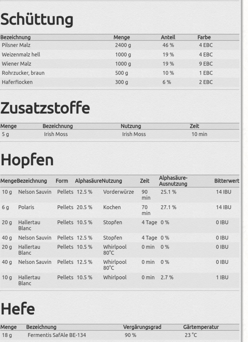 Zieldaten: 13 - 16 °P Stammwürze, 35 - 40 IBU