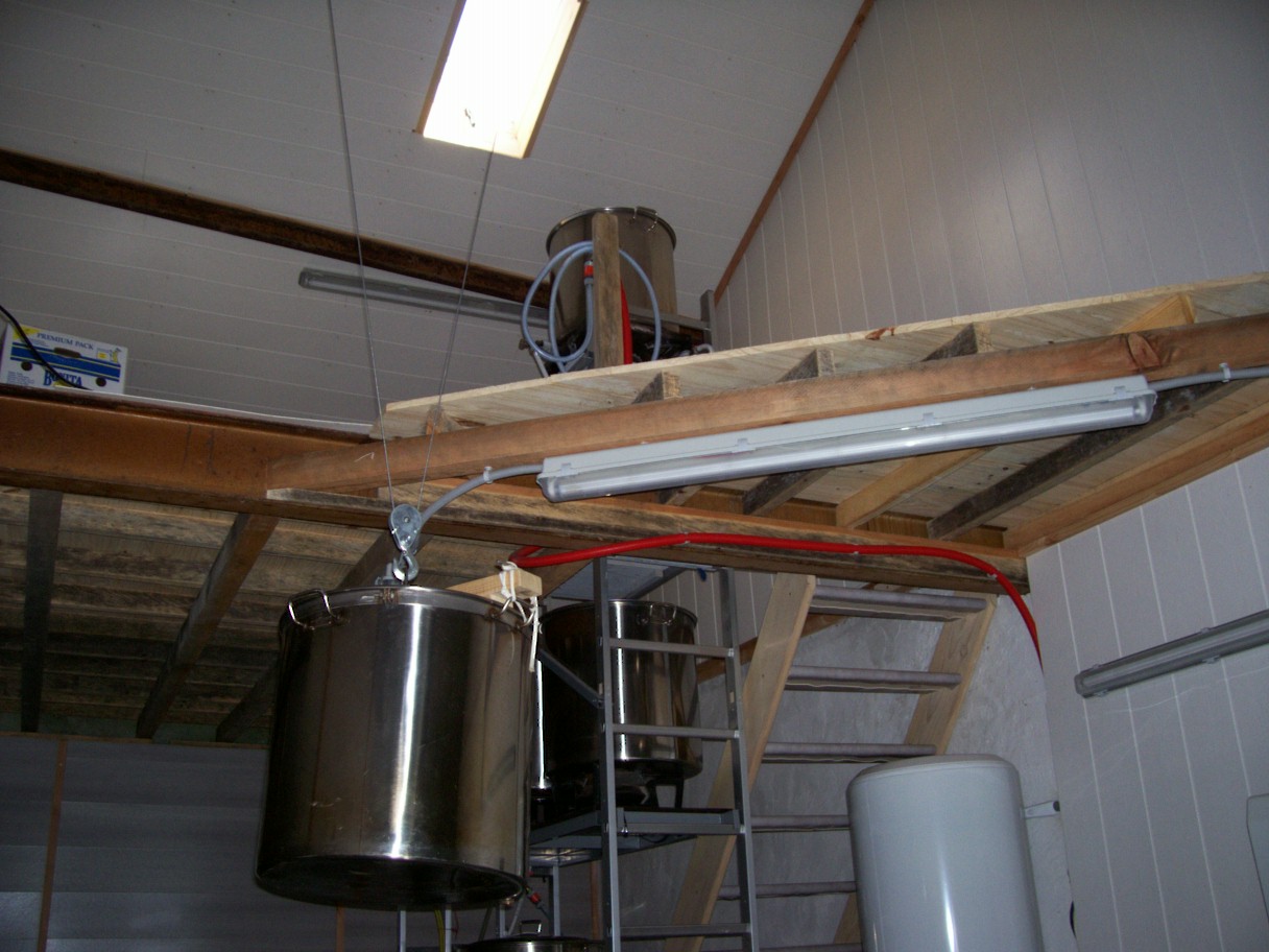 Hast Recht ,Geländer kommt noch ,bin beim Bodenputzen fast abgestürzt.Das Bier bringe ich eigentlich ganz locker weg in der Saison ,jede Menge Touristen da komm ich fast nicht nach aber im Winter ist total lau.Im Winter brau ich nur immer 70l alle 2 Wochen.Den Trebertopf kann ich mit dem Kran runterheben und der Hopfentopf steht ja fast schon unten.Mit der hoch und runter Lauferei ,das ist gar nicht so wild wie man denkt.Was aber klasse ist ich brauche für einen 180 l Sud ca 7,30Std inclusive putzen.