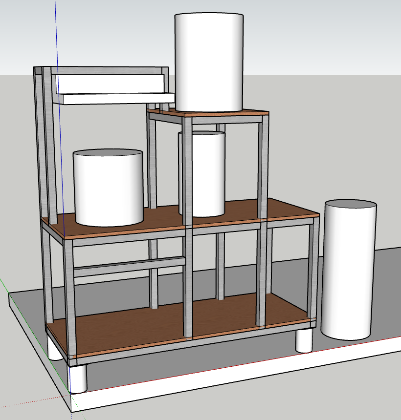 Der Aspekt mit der Gesamthöhe ist natürlich nicht von der Hand zu weisen. Ich habe gerade gemerkt, dass die Maischpfanne (Einkocher) in meiner Skizze sehr hoch aussieht. Das liegt daran, dass ich in der Skizze recht viel Puffer für das Rührwerk eingeplant habe. Tatsächlich wäre die Oberkante der Maischpfanne bei ca. 188 cm. Optimal ist das nicht, aber zum Austrebern würde ich den Einkocher runter heben. So schwer ist der in meiner Grössenklasse ja nicht.