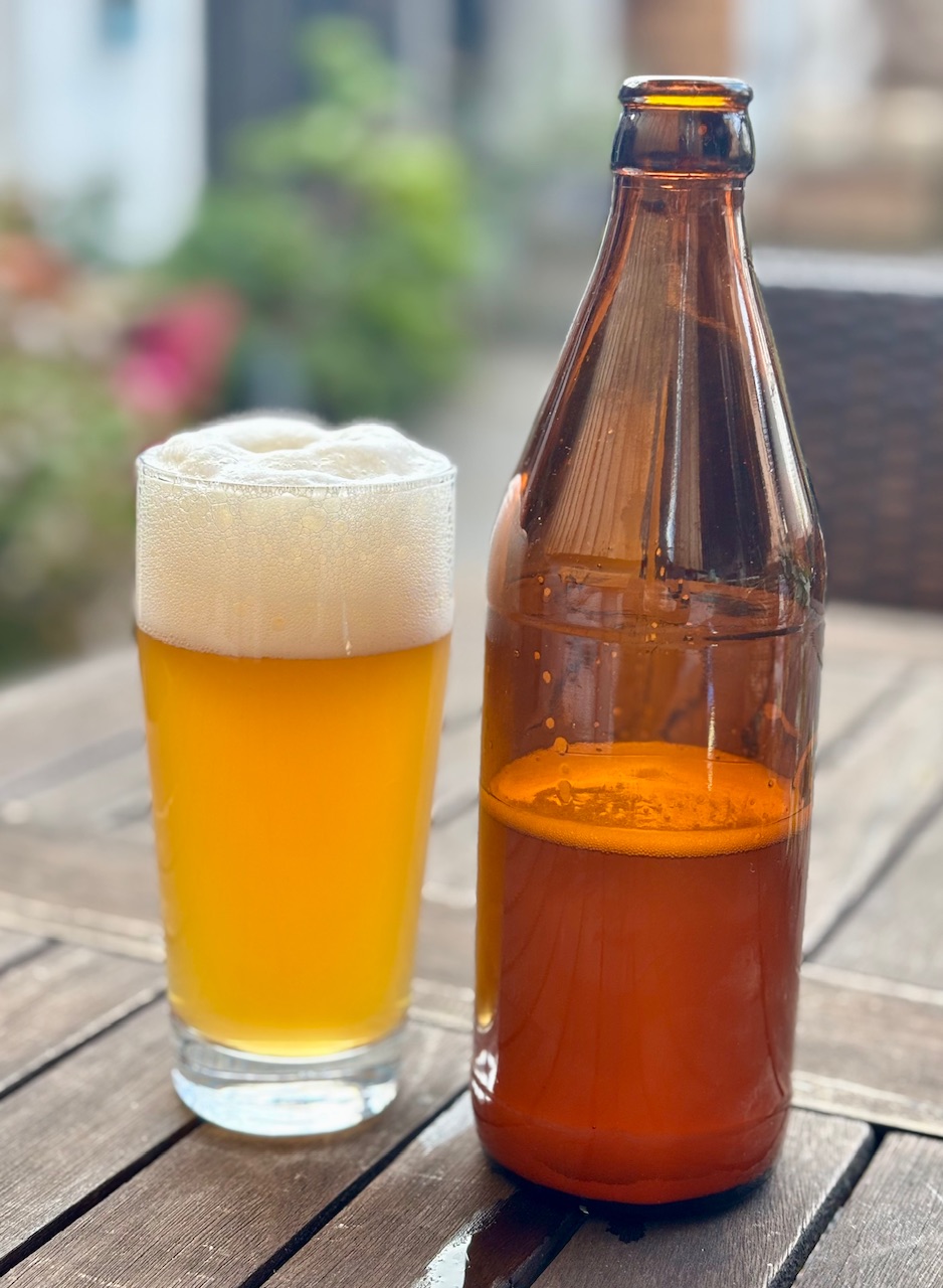Kleiner Hinweis: Flaschengärungen immer in einem Zug und extrem vorsichtig einschenken. Wenn du die Flasche absetzt und ein zweites Mal nachschenkst, dann wirbelst du Geläger vom Flaschenboden hoch und das Bier wird wieder trüb. Das ist nicht ultradramatisch, ändert aber den Geschmack nicht zum allerbesten.