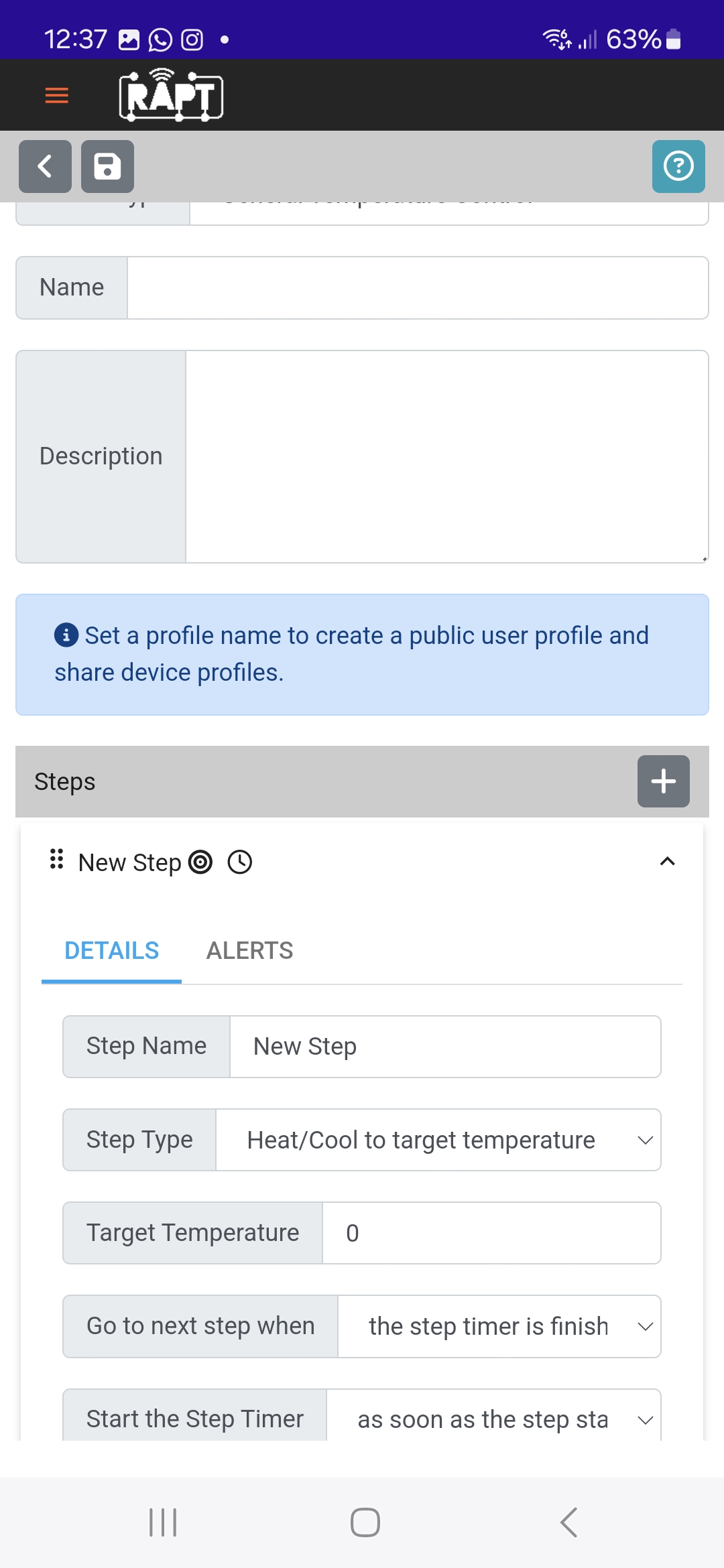 Ich hab den Regler (noch) nicht selber im Einsatz, aber soviel ich weiss, müssen die Rapt- Devices im Captiveportal erst registriert werden, damit sie auch remote genutzt werden können. Hast du den Regler denn schon registriert? Am Regler muss das Wlansymbol an sein. Dann sollte im Portal das Temperaturprofil eingestellt werden können.