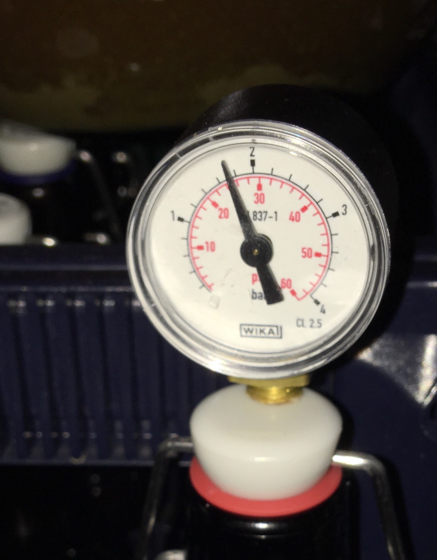 ich hatte das Manometer damals von meinem Klempner bekommen. Warum da jetzt ein Reduzierstück draufgekommen ist weiss ich gar nicht mehr.Da es aber ein guter Auflagepunkt für die U-Scheibe ist, blieb es drauf.