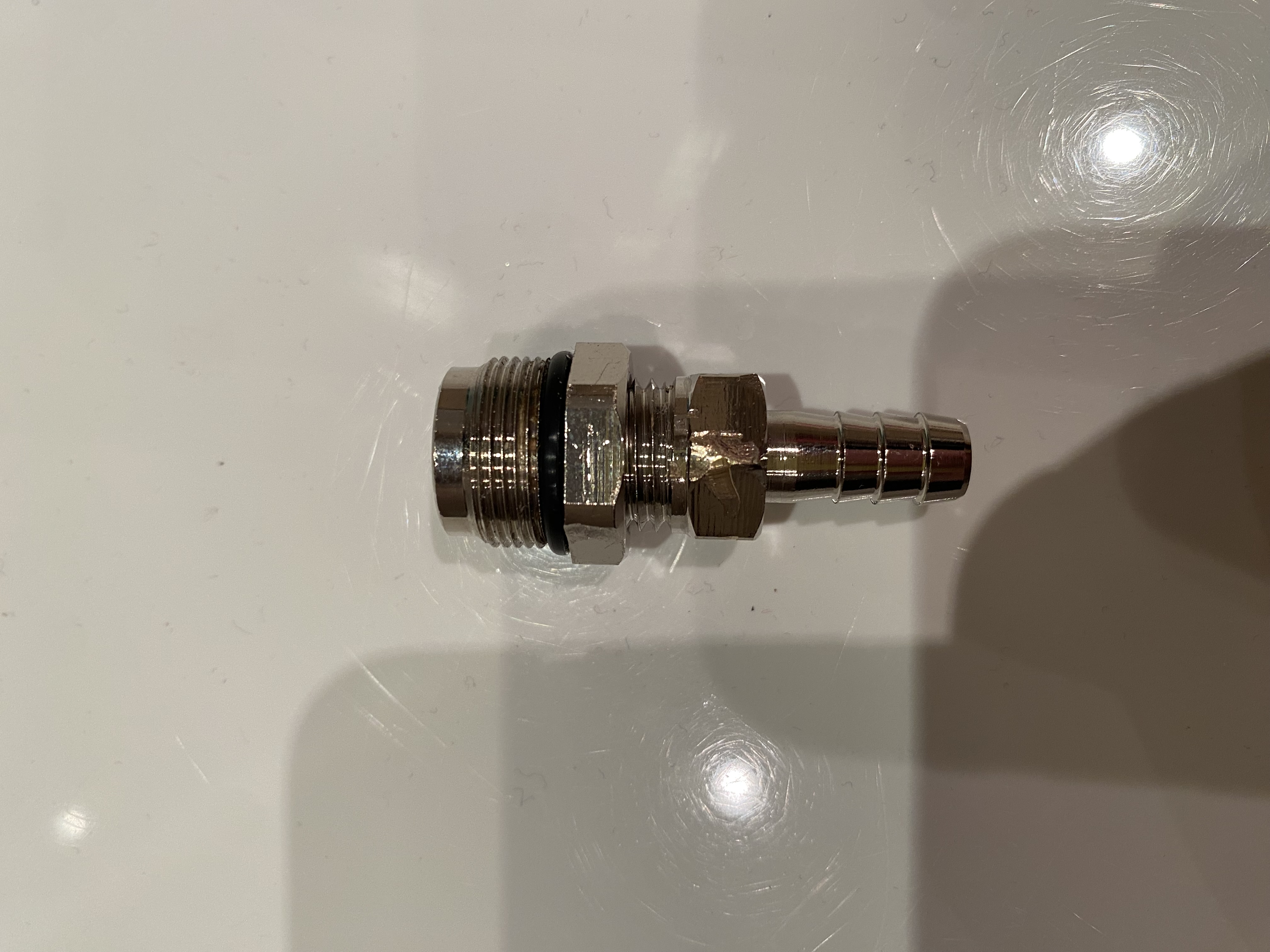 Fermenter Deckel mit TriClamp 2“ Anschluss -> NC Ventil Adapter (Gas) -> Steckkupplung CO2 NC CMB -> John Guest 8 mm NC Aufschraubverbinder -> 8mm Schlauch -> John Guest 8 mm Aufschraubverbinder … und diesen würde ich gerne an den Druckminderer anschließen, der allerdings nur eine Schlauchtülle hat für vermutlich 9-10mm Schlauch. Kriege ich den John Guest Anschluss (vermutlich 7/16“) irgendwie sauber an den Druckminderer? Die Verschraubung aus dem Druckminderer bekomme ich so ohne Weiteres nicht auseinander geschraubt…Bin leider unerfahren in dem Thema…