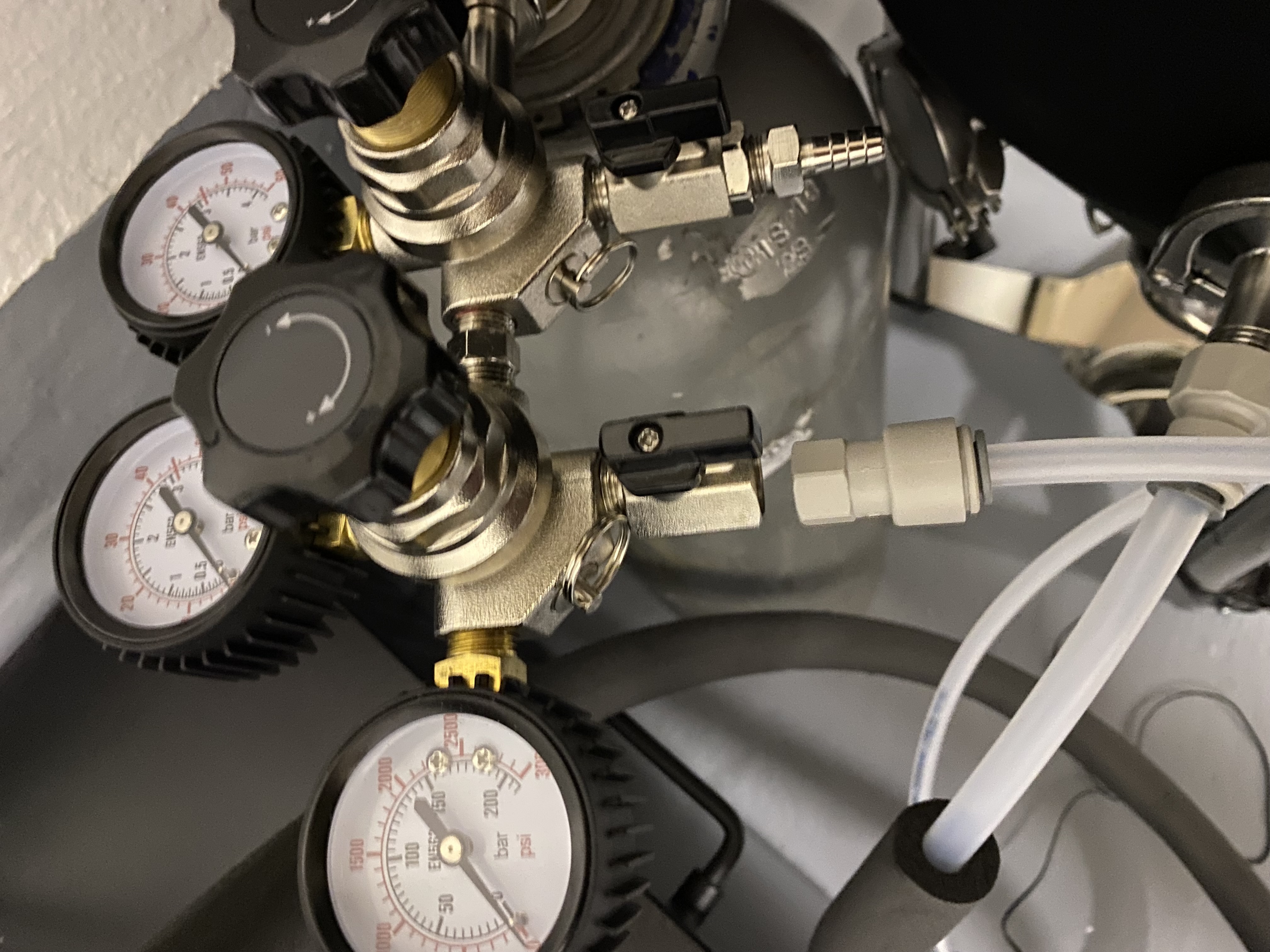 Hallo! Ich stehe gerade im wahrsten Sinne auf dem Schlauch. Ich habe eine Co2 Flasche mit Druckminderer vom Braumarkt (sie Bild). Tolles Gerät soweit… aber ich möchte gerne meinen Druck-Fernenter daran anschließen.