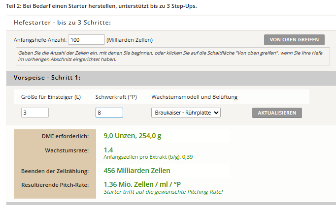 ich glaube du wirst 2 Dinge durcheinander: Einmal den Wert, den ich in meinem Post mal als "Sättigungsmenge" bezeichnet habe und die Anstellrate aus dem Brewersfriend.