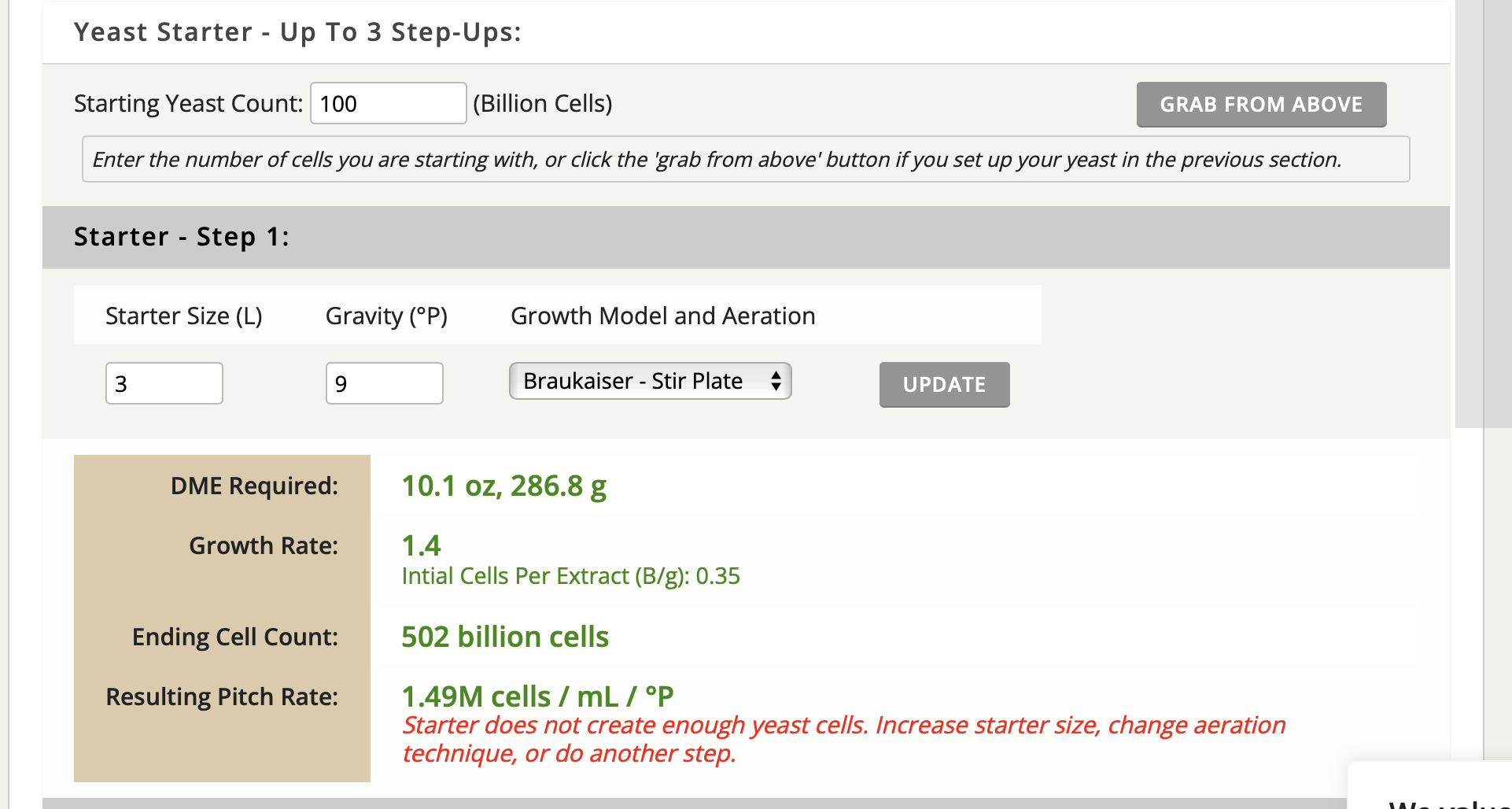 Es gibt Modelle zur Berechnung basierend auf dem Zuckergehalt, z.B. das von Braukaiser. Berechnet man die Zellen damit, dann würde man in Summe einen kleineren Starter benötigen, wenn man die Stammwürze des Starters erhöht.