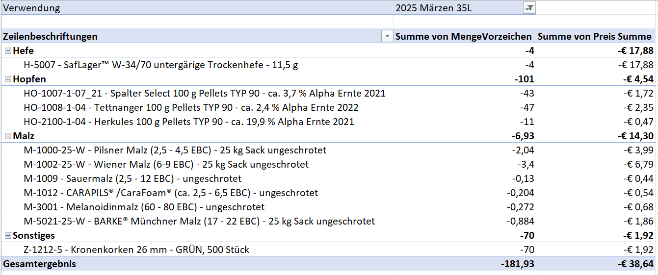 Jetzt habe ich allerdings zum ersten Mal ein Bier mit deutlich weniger Stammwürze (12 °P, ca. 34 l) gebraut.