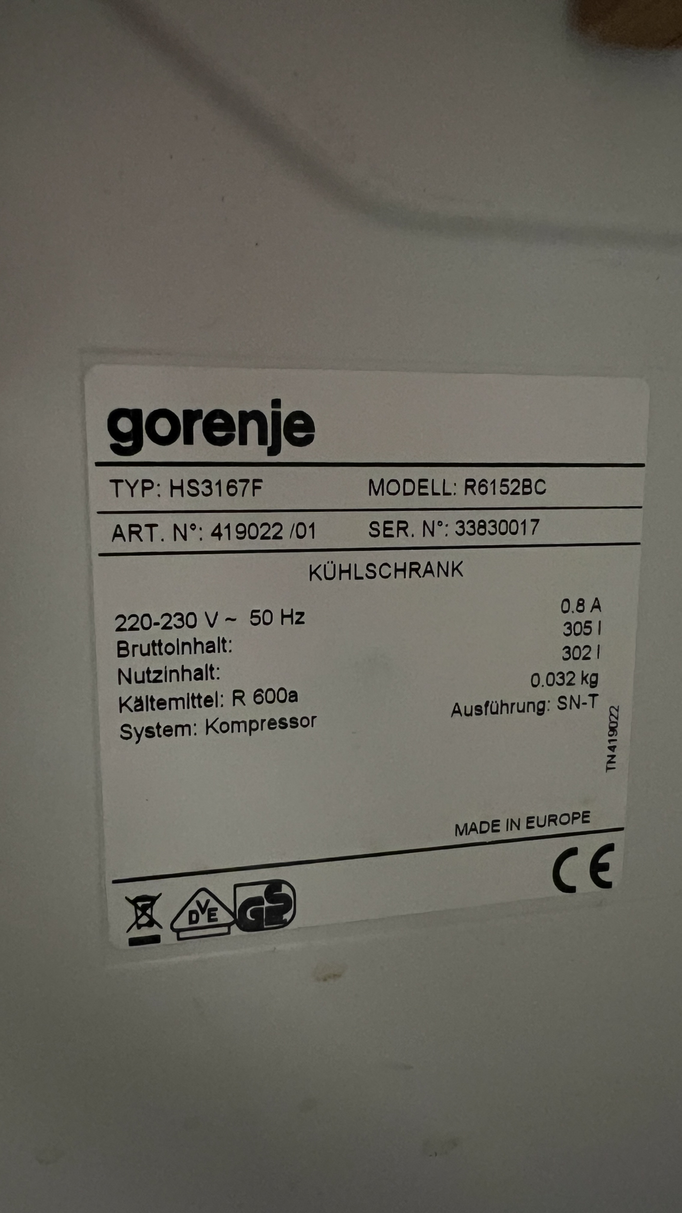 Der Kühlschrank ist ein Gorenje. Der ist echt gut für die Buckets. Der 54er geht rein, von den 27ern sogar zwei übereinander.