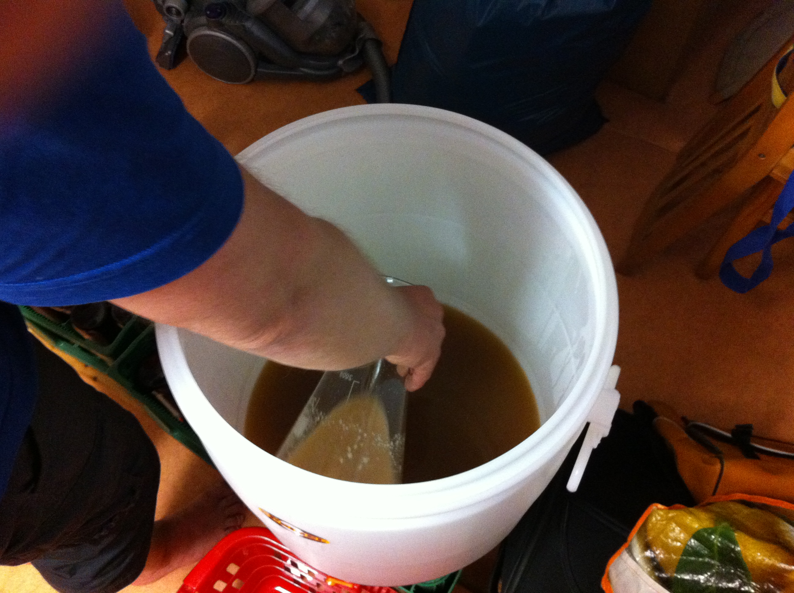 Nach einer Stunde kam die angesetzte Hefe dann in in das Gärfass.