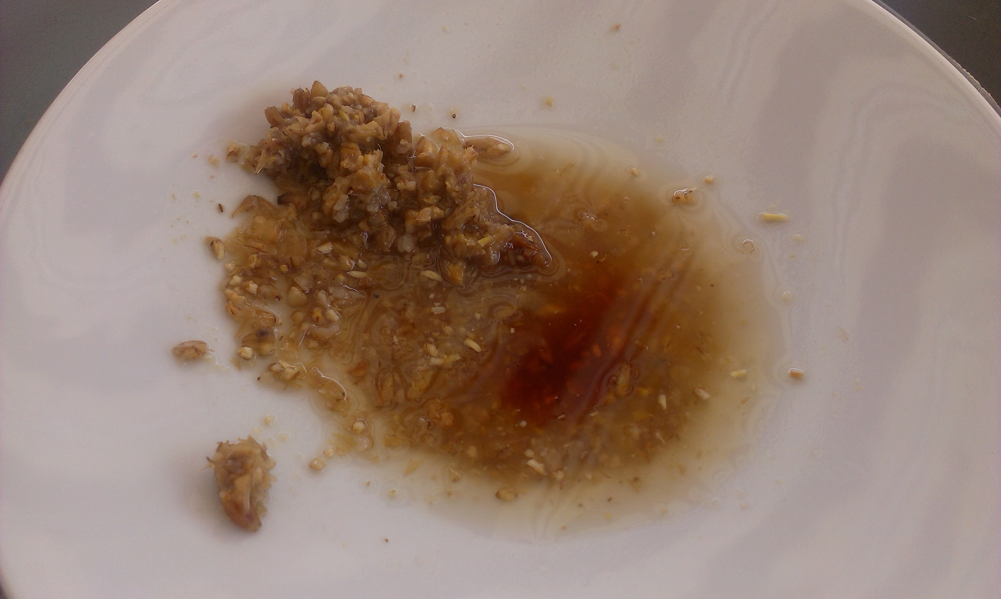 Und dann stockte der Fluß und ein Rest von ca. 3 Litern verblieb im Kocher und war auch nicht mehr zum Rauskommen zu bewegen. Dabei löste sich der Trubkegel wieder auf und wir brachen den Versuch ab. :Angry