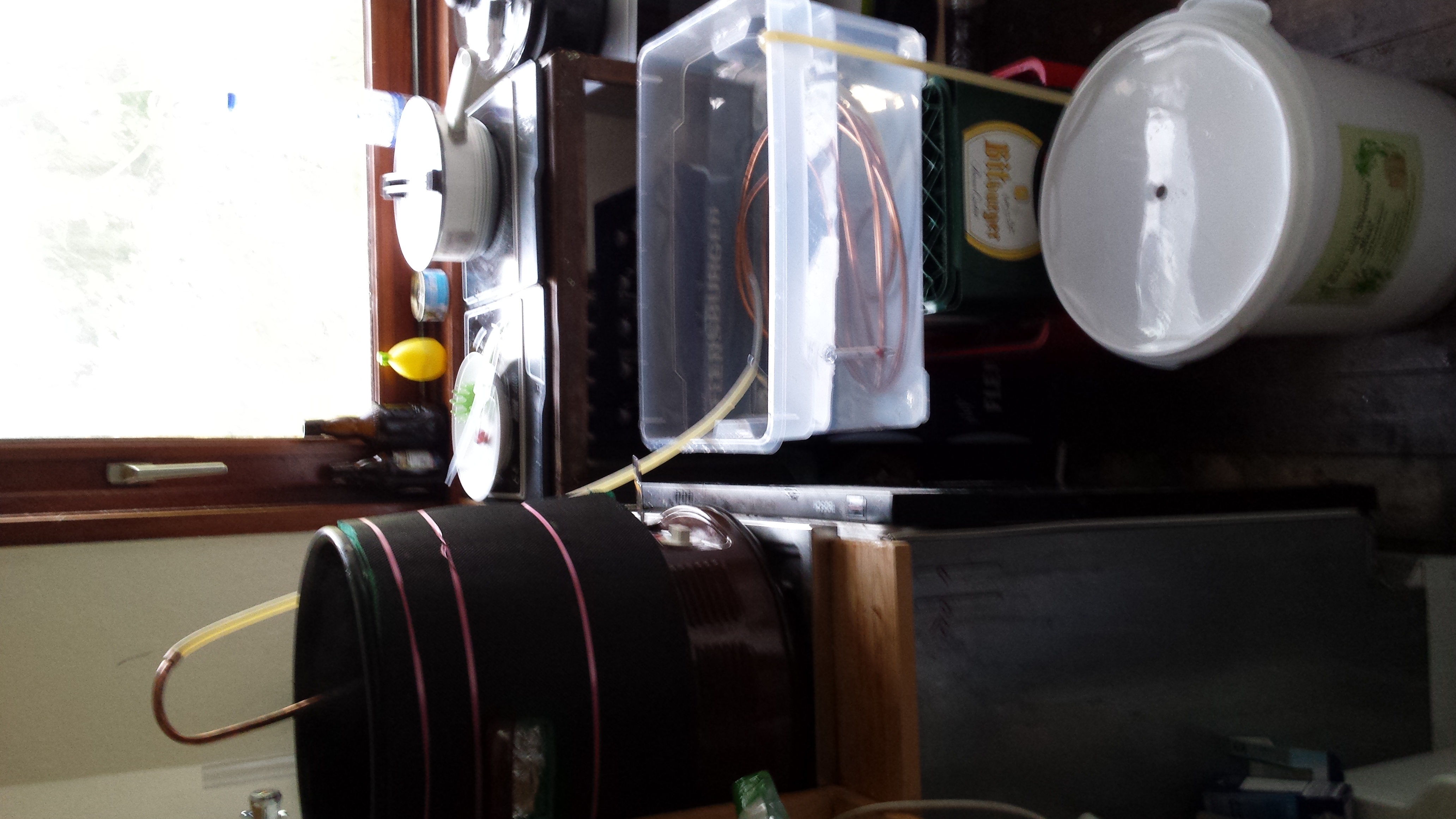 Am ende hatte ich etwas über 30 grad im bottich. Musste allerdings noch mit kaltem wasser verdünnen, um die verdampfte menge an wasser auszugleichen. So bin ich auf unter 25 grad gekommen und konnte anstellen. Gedauert hat das ca 20 bis 30 Minuten. Ich hatte dabei 5 teilkühlwasserwechsel...jeweils ca 7 Liter abgeschöpft und 7 liter wieder dazugegeben. Die kühlwassertemperatur lag so zwischen 20 und 30 grad. Mir ist klar dass das alles nicht optimal wirkt. Mir kam es nur darauf an mit einfachsten Konstruktionen ein maximales Ergebnis zu erzielen. Darauf möchte ich weiter aufbauen und weiter investieren.