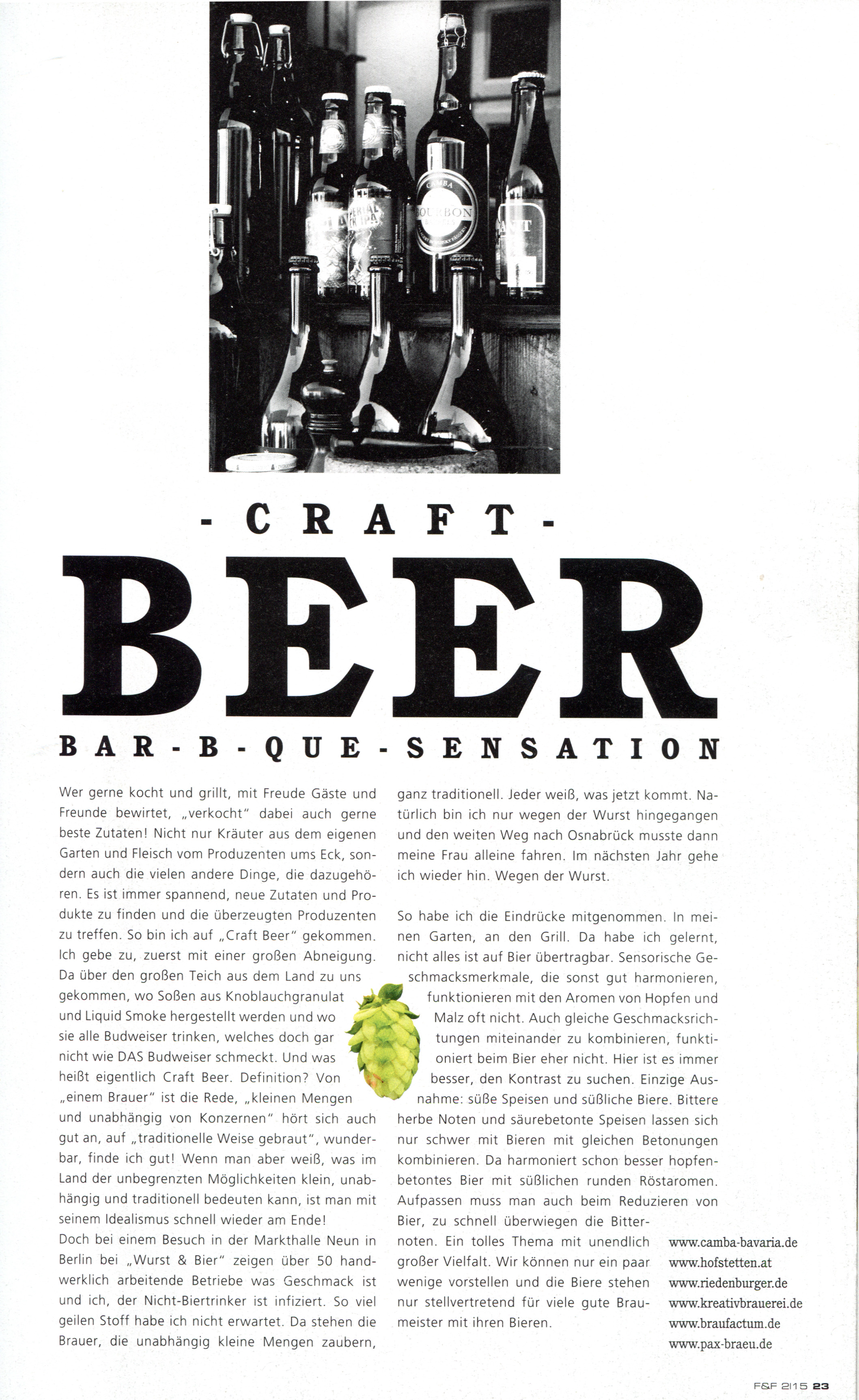 wie Ihr ja vielleicht wisst, bin ich begeisterter BBQer und Hobbybrauer. Vorletzte Ausgabe im BBQ-Magazin Fire & Food gab es da einen Bericht über die sog. "Craft Beer Sensation". Nun kann ja wirklich jeder "Depp" sein Bier einfach einkaufen. Doch viel interessanter ist es das herrliche Getränk selber herzustellen und zu variieren. Daher sucht der Redakteur Elmar Fetscher vom Fire & Food Magazin (http://www.fire-food.com/de/index.php) evtl. jemand, der sich als Hobbybrauer/oder Profi vorstellen möchte und noch einen Hintergrund/Erfahrung mit BBQ hat, damit der Artikel einen sog. Mehwert für die Leserschaft bekommt.