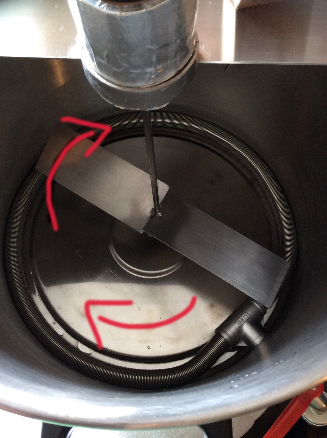Habe eine Frage die ich im Forum nicht gefunden habe. Und zwar wie soll ich meinen Rührer ( selbst gebaut und mit Bohrmaschiene betrieben) getreiben? In die Richtung, dass er nach unten druckt ( eingezeichnete Drehrichtung) oder nach oben mischt? Hoffe ihr versteht die Frage?
